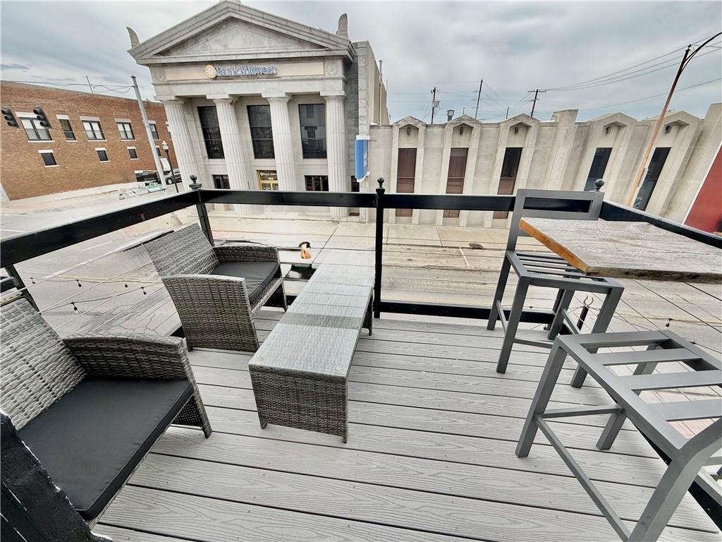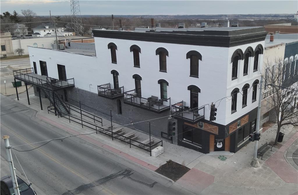 Prime Downtown Commercial Opportunity – Northwest Missouri An exceptional business opportunity awaits in the heart of downtown Northwest Missouri. This beautifully renovated corner property offers incredible visibility, ample parking, and endless possibilities for entrepreneurs or investors. The building features over 6,000 square feet of space and is currently configured to support multiple uses, including restaurant, retail, office, event venue, or mixed-use commercial ventures. The layout allows for easy subdivision, making it ideal for housing multiple businesses under one roof. The top floor includes three fully furnished apartments, perfect for short-term rentals or long-term tenants ready for immediate income potential: Two 1-bedroom apartments One 2-bedroom apartment Each unit includes its own washer and dryer and full kitchen. Residents and guests can enjoy multiple balconies, including balcony access from the apartments and the second-level commercial space. Additional highlights include: Multiple public and private bathrooms. Multiple entrances from both the front and side of the building. Recently renovated and in immaculate condition. Side patio space. Excellent corner downtown location. Within walking distance of shops, restaurants, and the library. Whether you're looking to start a new venture, expand your business, or invest in a mixed-use income property, this unique building is ready for its next chapter.