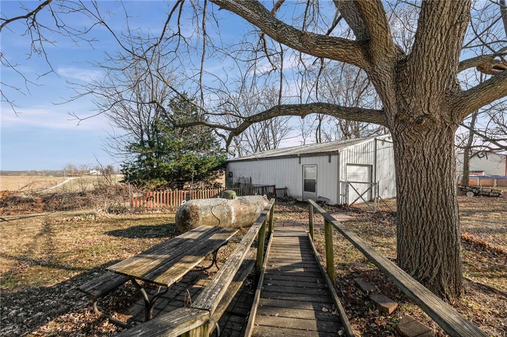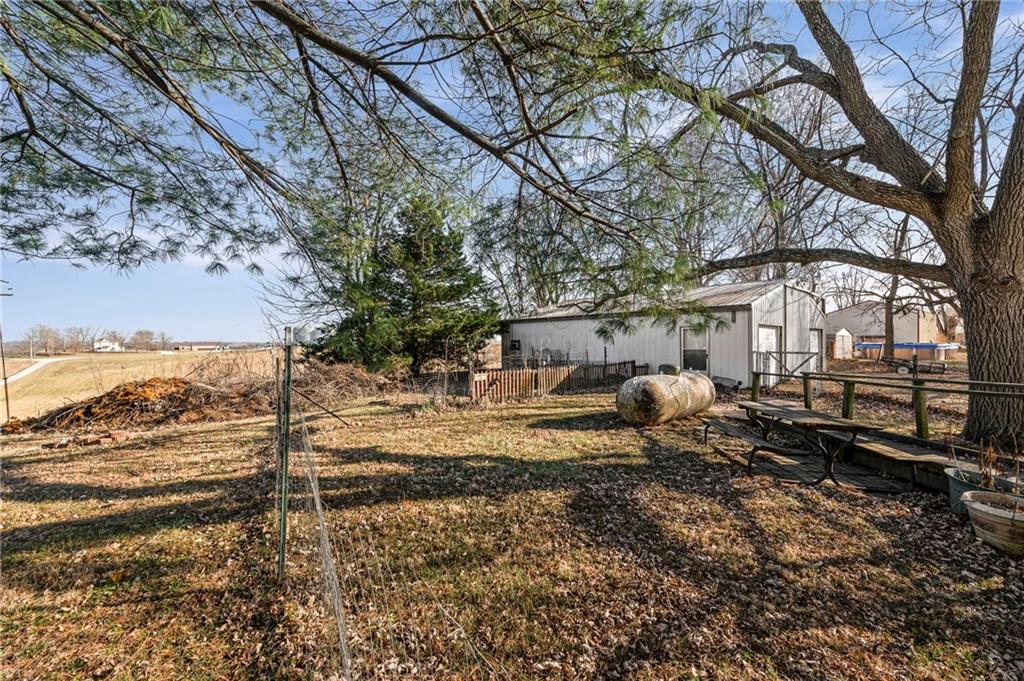 This classic 1930s bungalow offers a blend of historic charm and is ready for someone to make their own. Situated on a generous 0.51-acre lot, corner lot with a large three-stall outbuilding, providing ample storage for vehicles, RV, hobbies, or equipment. This property is ideal for those seeking a peaceful, small-town lifestyle just 15 mins away from St. Joe and about 25 mins from KCI airport.