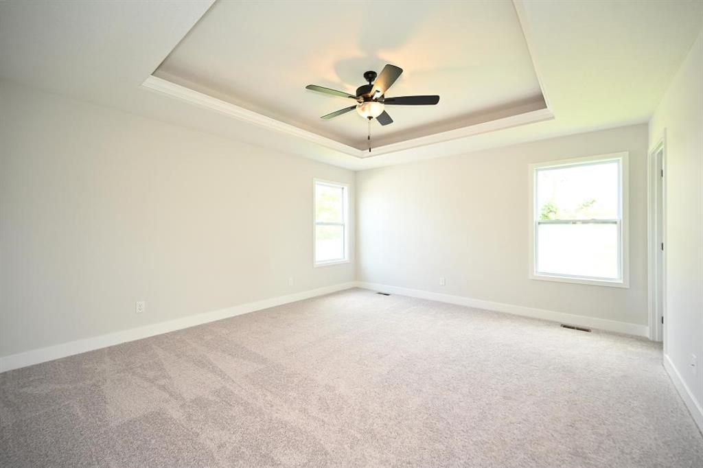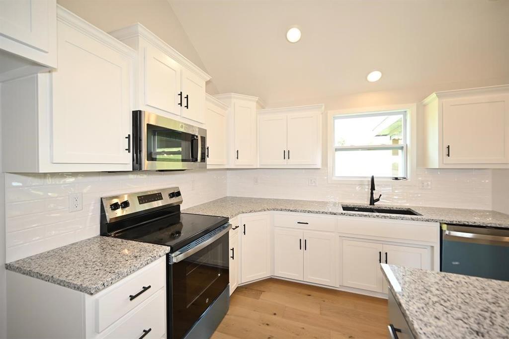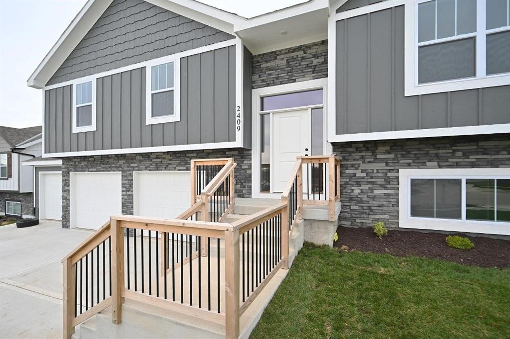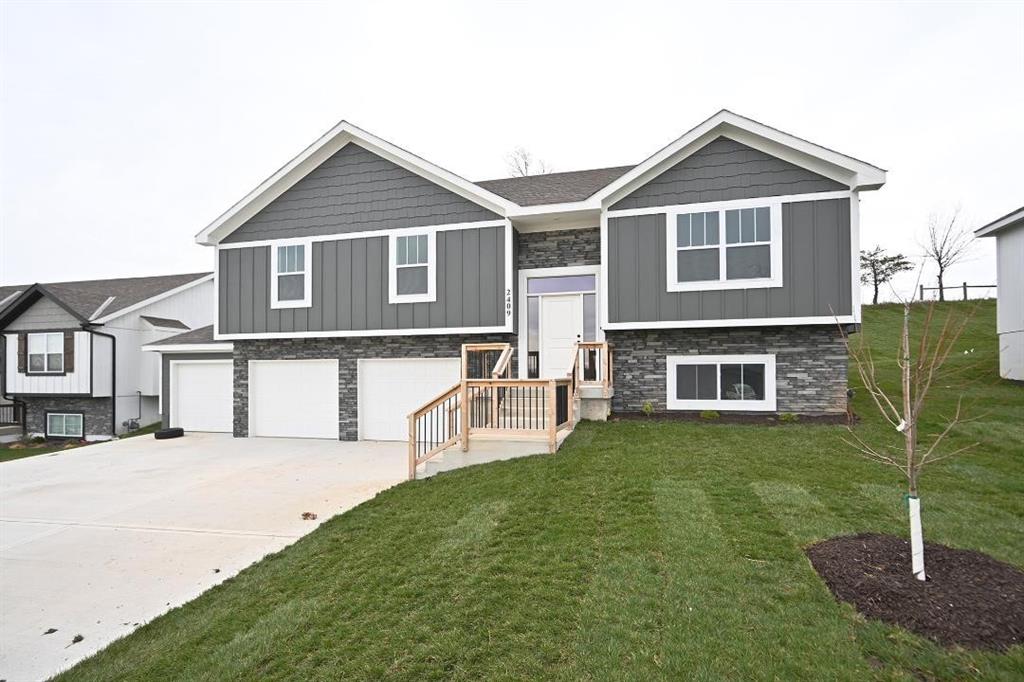 Stunning Custom Home with Modern Features and Inviting Spaces Welcome to your dream home! This exquisite property showcases an open floor plan, ideal for both entertaining and everyday living. The elegant kitchen boasts pristine white granite countertops, custom cabinets, and stainless steel appliances, all seamlessly flowing into the spacious living area centered around a beautiful fireplace. Step outside to discover a covered deck complete with a fan and light, perfect for enjoying serene views of the adjacent pasture. The rich feel of this home is accentuated by LVP throughout and vaulted ceilings enhancing the sense of space and light. The laundry room features stylish tile, while two generously-sized guest bedrooms offer plush carpeting, ceiling fans, and trey ceilings, creating a comfortable retreat for family and friends. The guest bath is tastefully designed, highlighting a tiled tub and a marble vanity that exudes luxury. Retreat to the master bedroom, a good-sized haven with carpet, a ceiling fan, and sophisticated trey ceilings. The walk-in master closet provides ample storage, while the en-suite master bath features elegant tile flooring, a double vanity with sleek black faucets, and a spacious tiled shower. The lower level invites you to enjoy a large fourth bedroom, complete with carpeting and a ceiling fan, alongside a substantial family room perfect for movie nights. The additional full bath boasts a tiled floor and a shower for convenience. Completing this remarkable home is an oversized three-car garage, providing plenty of space for vehicles and storage. The front of the house is adorned with beautiful stone, adding to the curb appeal with shutters to boost the look. Don’t miss the opportunity to make this luxurious yet inviting home your own! THESE ARE SIMULATED PHOTOS MORE TO COME OF THE HOME.
