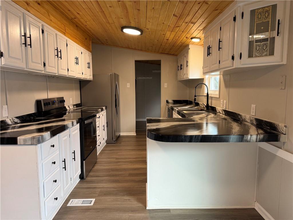 If you are looking for a fully updated, ready to move into home, look no further! The current owners have done all of the heavy lifting for you. We are talking new ROOF, new HVAC, new WINDOWS, new EXTERIOR DOORS, beautiful wood ceilings, plumbing, electrical, flooring, paint... the list goes on and on! The updated kitchen boasts custom countertops, a large beautiful sink and brand new stainless appliances. Many homes like this are short on storage space, but not this one. Built ins, a walk in closet, linen closet (just to name a few) and if that is not enough, you have not 1, but TWO sheds. Large shed has an overhead garage door and active electricity. Make your appointment to see this one soon!