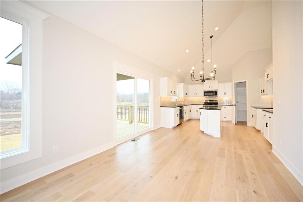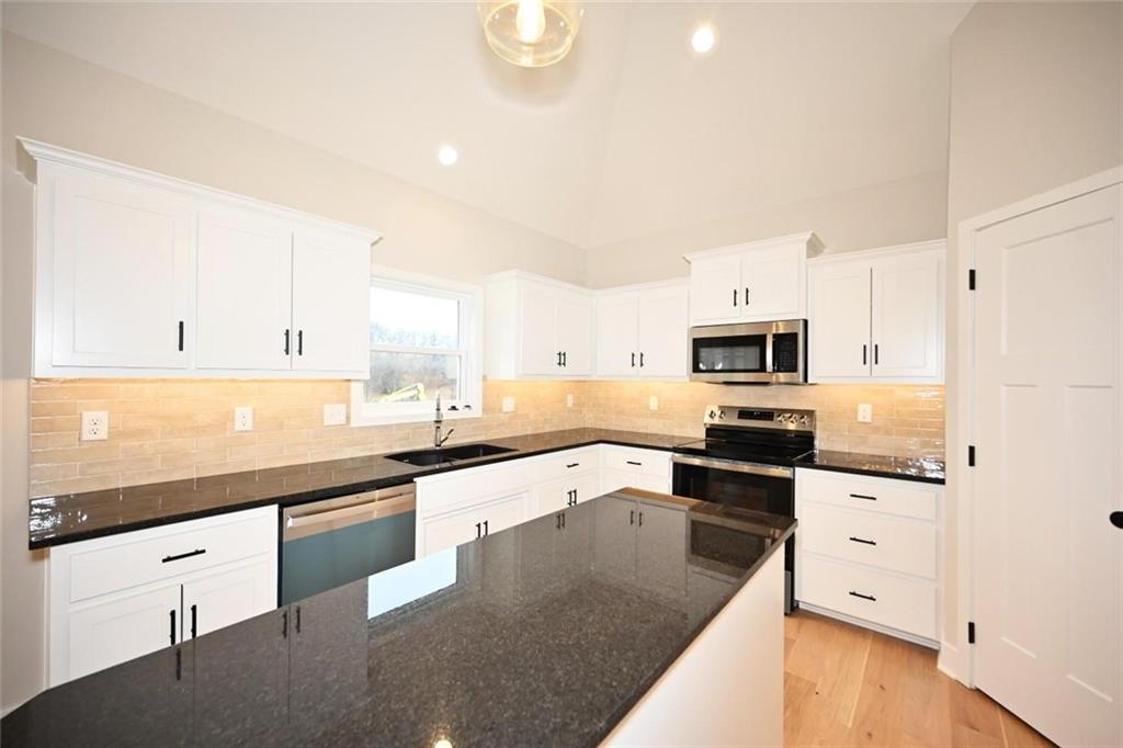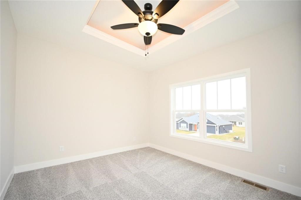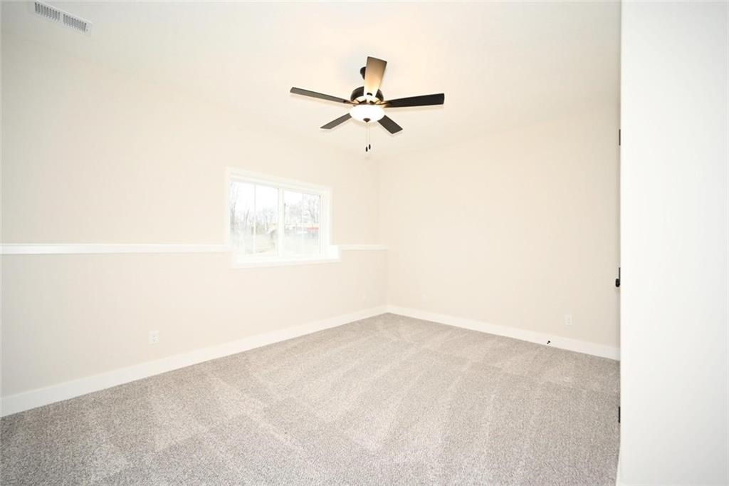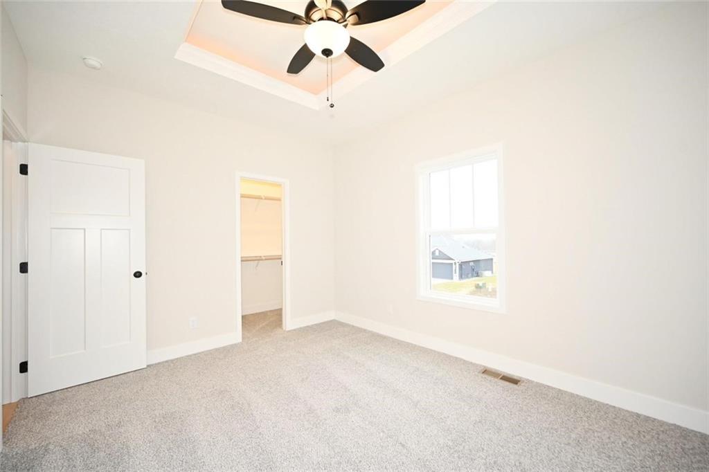 SELLER WILL PAY 5,000.00 CLOSING COST / SELLER PAYS. his beautiful home features a range of custom amenities that enhance both functionality and style. The heart of the home features a stunning kitchen with custom white cabinets, a spacious pantry, and an inviting island topped with gorgeous granite. Modern stainless steel appliances add both style and utility, while the covered deck, complete with a ceiling fan, provides a perfect outdoor stocked lake for fishing. The great room boasts LVP flooring throughout, complemented by a beautiful stone fireplace creating a cozy and elegant focal point. The laundry room is efficiently designed with tile flooring and custom cabinetry to keep things organized. The home includes two bedrooms with carpet, each featuring tray ceilings and ceiling fans for added comfort. The guest bathroom is stylishly designed with tile flooring and a tub, ensuring convenience for visitors. The master suite is a true retreat, featuring plush carpet and a spacious walk-in closet. The master bathroom boasts custom cabinets, a luxurious jetted tub, double vanity sinks with sleek black faucets, and a huge tile shower for a spa-like experience. The lower level includes an additional bedroom with carpet and a ceiling fan, along with a full bathroom featuring tile floors and a tub. The home is equipped with ample recessed (can) lighting throughout, showcasing its thoughtful design. Additional highlights include an oversized three-car garage and eye-catching stone accents on the front of the home, making it not only functional but also visually appealing. This property combines elegance, comfort, and practicality, making it a fantastic place to call home! LAKE IS STOCKED.