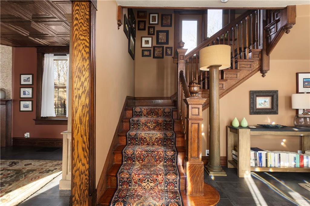 Situated on 1.06 Acres within the Krug Park Place Historic District, this property has been Carefully Maintained and Updated while Preserving its Architectural Integrity. Known as The George Ward House, this Two-Story, Four-Bay all Brick Masonary Home reflects Classic Greek Revival Influence through its balanced proportions and Timeless Symmetry. Major Improvements include a 2019 Whole Kitchen Remodel which Showcases Exceptional Craftsmanship that includes Custom Cabinets, Handmade Encaustic Cement Floor Tiles that were Handmade to match the Cabinet Color, Negresco Honed Granite Countertops, Fisher Paykel Appliances. Other Major Improvements include all New Windows (except for bathroom), New Roof in 2024, New Driveway 10' wide x 125' long, East & South Retaining Stone Walls Redone, West retaining wall added. 3 Car Detached Garage 28 x 36 with loft storage. See full list in documents plus historic information. Chicken/Bird House is 10 x 8 insulated with electricity. The aviary is also 10 x 8.
