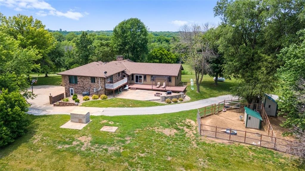 15.71 +/-Acre cattle & horse property! This property has many impressive features with a Main House offering 5 bed 4 bath Ranch/Raised Ranch, cathedral ceilings, stone gas fireplace, bay window with seat bench, large open kitchen--huge granite island, custom cabinets, stainless appliances, dual ovens/convection, main floor master bedroom with ensuite w/ separate shower and jetted tube, a formal dining room, an eat in dining room & finished basement & sauna, a livestock barn, separate heated & cooled Office/Gym building with wet bar & bathroom, 41x84 outbuilding with concrete floors, heating & cooling, bathroom, water, spa-loft with cold plunge, hot tub, steam room. This compound offers an an abundance of wildlife. While this property is secluded and away from the busy everyday life, you are still only minutes from the downtown of St. Joseph, shopping schools, restaurants and entertainment. The property has great highway access. Just 45 from the Kansas City area. Travel to this property is on paved roads. 17 Vehicle Parking....