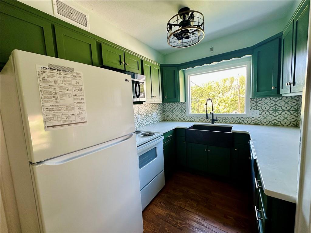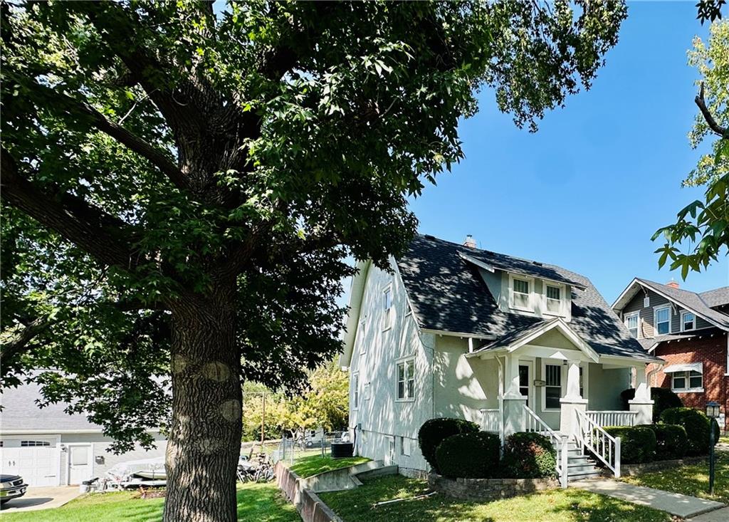 Charming and beautifully remodeled 1½-story home filled with character and modern updates! The main floor features a spacious living and dining area with gorgeous hardwood floors, a breakfast nook, and a stunning kitchen with custom-built cabinets, a copper farmhouse sink, and quartz countertops. Vintage built-in cabinets add a touch of timeless charm. A main floor bedroom and a convenient half bath complete this level. Upstairs offers 2–3 bedrooms and a full bath with a large walk-in shower. The walk-out lower level provides a generous family room, utility room, a spacious full bath, and a large finished storage closet. Enjoy relaxing on the inviting front porch, a fenced-in yard, and a 2-car garage. Ideally located close to the park!
