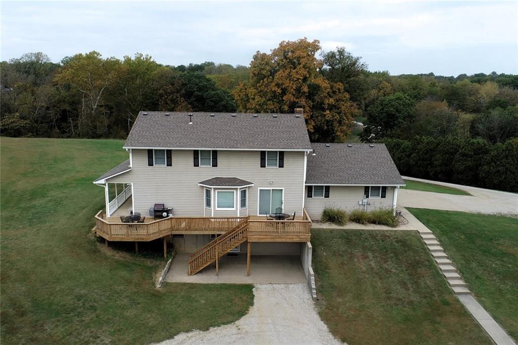 Custom-built, one-owner home on 7± private acres in the Savannah School District. Spacious 6-bedroom, 4 bath layout featuring a main-floor primary suite and a private-entry mother-in-law suite in the basement. Designed for multi-generational flexibility and entertaining with two full kitchens and two laundry rooms. Quality construction throughout, including 2x6 walls, Andersen windows, a reverse osmosis system, two wood-burning fireplaces with inserts, and wood floors crafted by Sam Church. Mature trees, a creek, and a pond create a peaceful natural setting with abundant wildlife. Enjoy the outdoors from the wrap-around porch, large deck or patio. Unwind in the relaxing hot tub, a perfect year-round retreat that stays with the home. Attached 3-car garage plus a 4-bay detached insulated/heated/cooled garage with half bath—ideal for a home-based business, hobbies, storage, or workspace. Minutes from shopping and dining and approximately 45 minutes to KC Airport. Acreage subject to final survey. Additional acreage available see MLS #2594669, 2594670 & 2594671. Owner is a licensed real estate agent in Missouri.