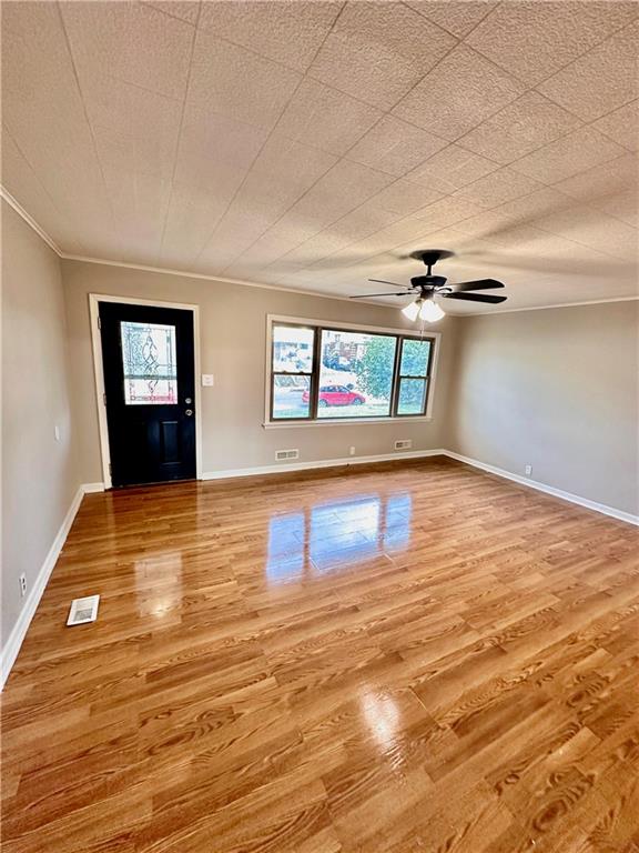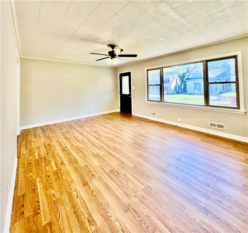Beautiful hardwood flooring runs throughout this inviting 2-bedroom, 1-bath home. Enjoy spacious living and dining rooms filled with natural light, creating a warm and welcoming atmosphere. This charming home is perfect for relaxing!