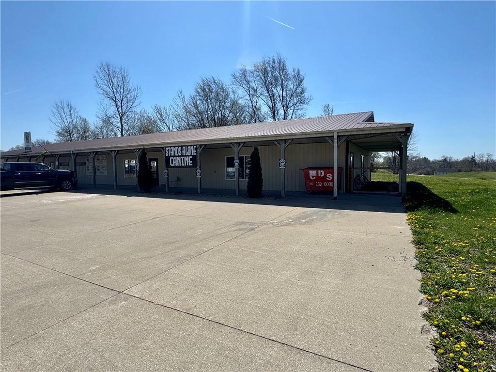 Multi-use property with front visibility from US 71 Highway. Modern building with high traffic count, parking lot holds 10-12 cars. Approximately 800 sq ft of office space and 1700 sq ft of open space. For sale $225,000 or lease $1,800 per month.