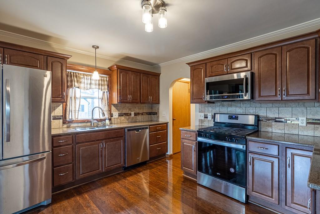 Over 3000 square feet of living space in this updated all brick ranch home. Kitchen features stainless appliances, quartz counter tops, maple cabinets, wood floors. All four bedrooms are on the main level and are extra large. Laundry is also on the main as are two full baths, one with a whirlpool tub. Large living room with wood burning fireplace and newer carpeting, and nice sixed dining room with wood flooring. All the windows have been replaced recently with energy saving thermos. The lower level has a large family room, kitchen area, fireplace, 3rd full bath, and can be accessed from the outside as well as the inside. A detached garage will hold 2 or more vehicles plus there is a large storage room in the back. The large private backyard is fenced.