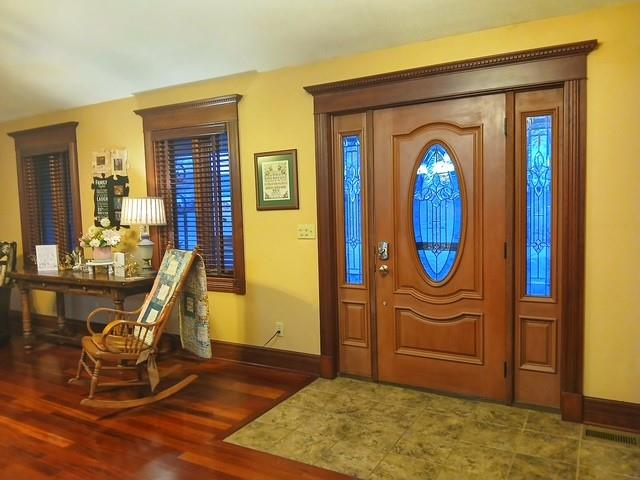 Custom built home with luxury living. This ultra beautiful home is on the main residential street in Mound City, Mo. There are 2 extra large lots that are that can be added in this sale which are sold separately. This way no one can build behind you and you have your privacy. The home has a full basement which a walkout and upstairs entrance. An extra garage in basement for your lawn mower or golf cart since this home is only 2 blocks from the golf course and swimming pool. The house is 1700 sq ft with an additional great room which is 700 sq ft on the back of the house with awesome views of the countryside. The kitchen has custom made cherry cabinets, cherry flooring , cherry stain on all of the solid woodwork, large rooms for anyone to enjoy your family and friends. Large primary bedroom with jet tub and walk-in shower. The den could be a bedroom but non conforming. All Appliances stay with the property. You can't find a better built or maintained home in the area.Partial fenced yard for kids or pets Back patio is huge and there are 2 more garages in the basement for larger golf cart or side by side.