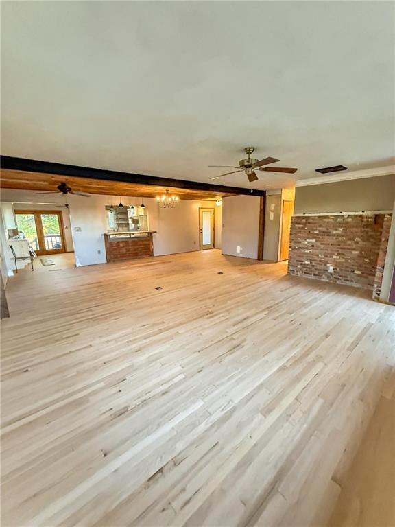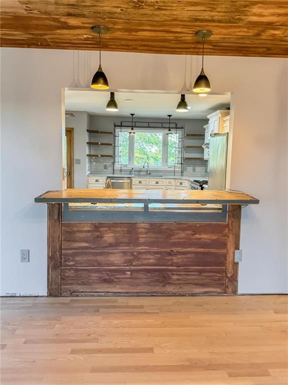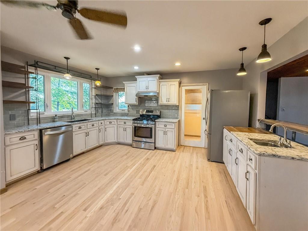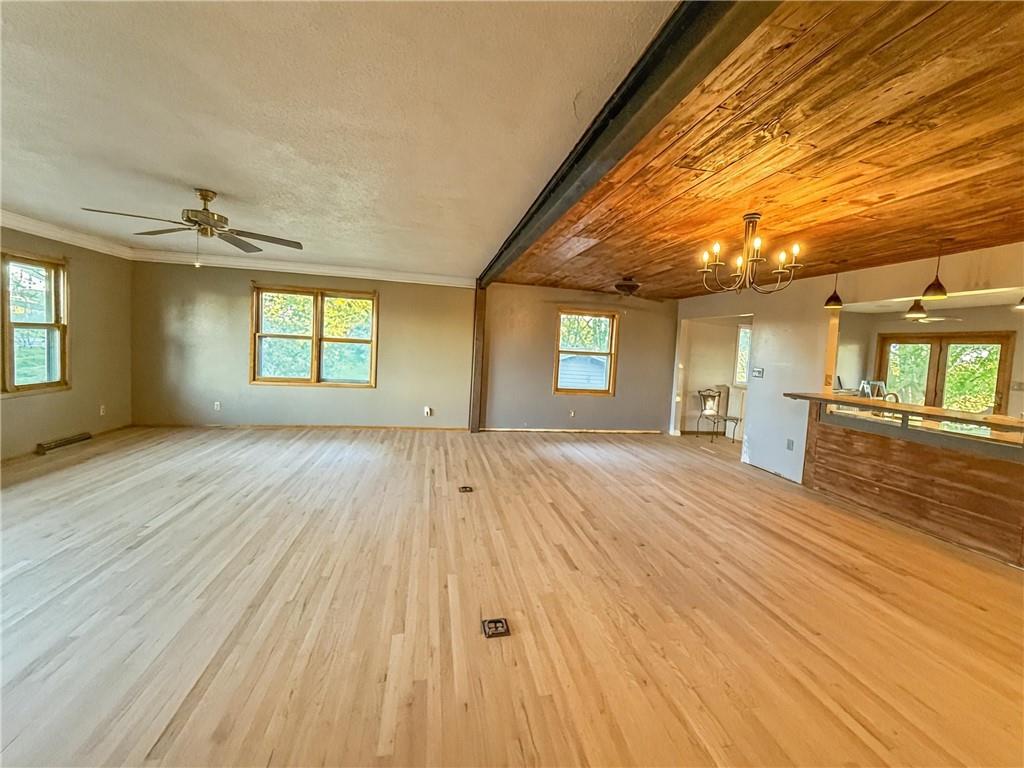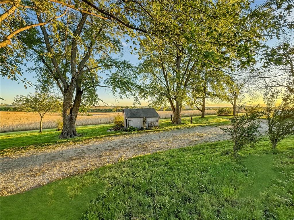 Beautifully updated 3-bed, 2-bath home on 0.80 acres with Hwy frontage and peaceful country views. Property includes the adjoining lot to the west, offering extra space and flexibility. Features include new unfinished hardwood floors ( can leave natural or stain to your desired color on your own) , wood ceiling over dining area, and a spacious open layout. Kitchen boasts slow-close cabinetry, quartz counters, tile backsplash & stainless appliances plus a large walk in pantry. Updated main floor bath with laundry in it. Lower level includes 2-car garage with shop area. Outbuildings stay. Custom mantle to be installed before closing