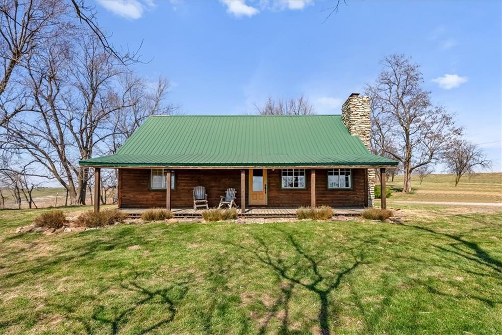 Welcome to "The Lodge"! This wonderful log cabin style home sits on 1.47 acres of land and is surrounded by neighboring farmland, making the setting incredibly peaceful! Enjoy slow coffee-sipping mornings or peaceful summer evenings out on the front porch, then get cozy by the stone masonry fireplace and turn on a movie! This home offers a generously-sized kitchen, a conveniently located laundry/utility room off the kitchen, two main floor bedrooms with a main floor full bathroom, custom log cabin style stairs up to the second floor, a primary suite on the second level with an updated and spacious private bathroom, and a secondary living/family room on the second level in a space that could even be turned into a 4th bedroom if desired. Enjoy the beautiful woodwork and the style that has unfortunately been all but left behind in the modern world. With a 50+ year metal roof, a recently pumped and inspected septic system, a nice shed for storing your yard tools and more, and a view out the windows that makes you want to wake up early and watch the sunrise, you won't regret checking this unique home out. Come see it before it's gone! Buyer/buyer’s agent to verify taxes, square footage, lot size and all details during inspection period. All information deemed reliable but should be verified.