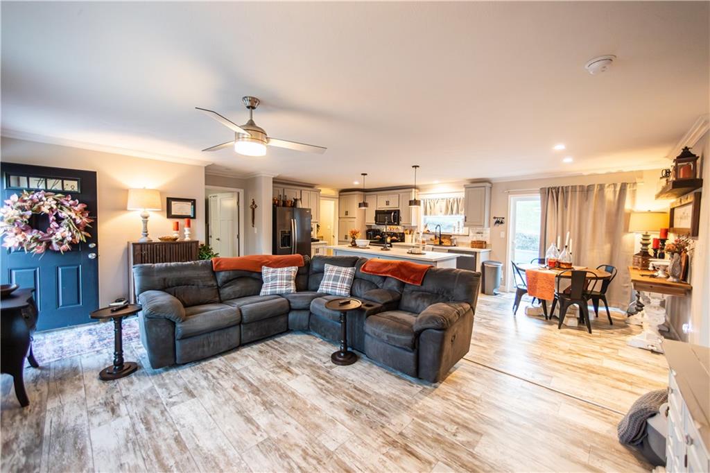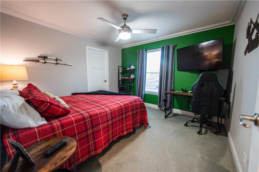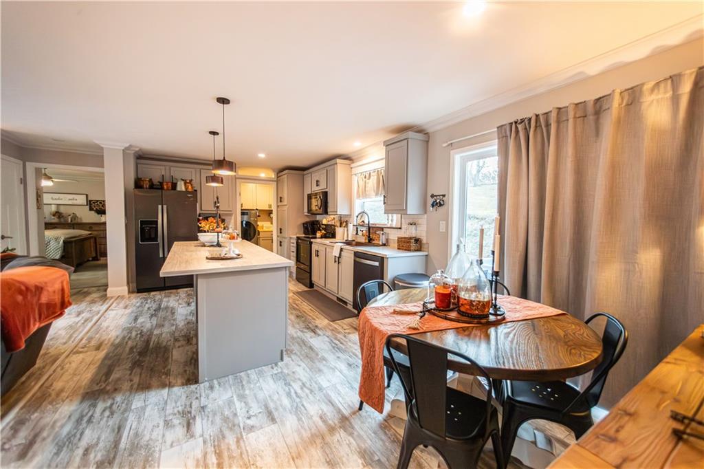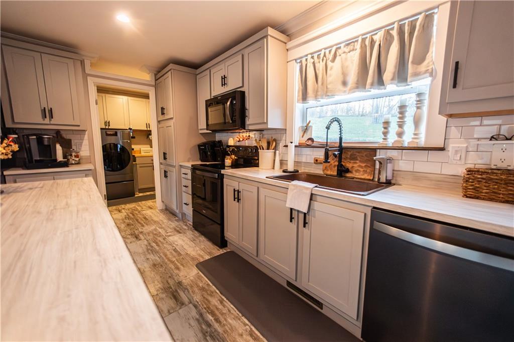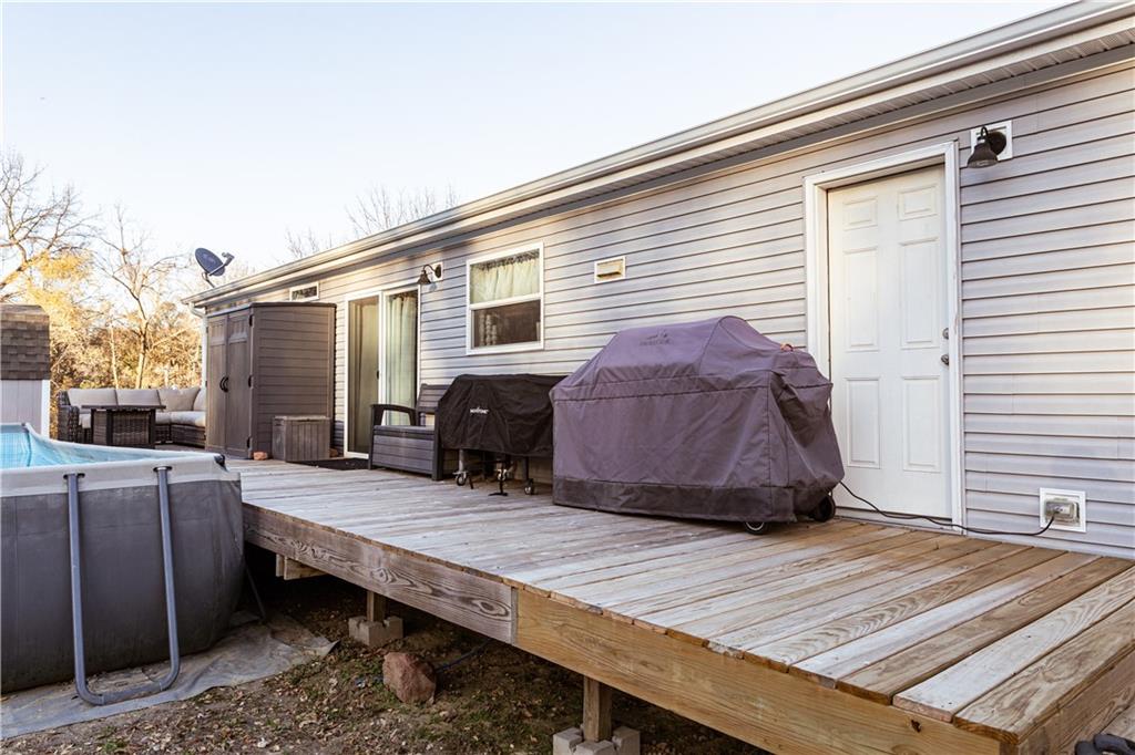 Beautiful 3-bedroom, 2-bath home on 2 acres inside city limits. This 2020 Champion home is permanently affixed and features 2×6 sheetrock walls, upgraded trim, black stainless-steel appliances, a hammered-copper farmhouse sink, and a large kitchen island. Enjoy The Hague water softener system with reverse osmosis. The primary suite includes double vanities, two walk-in closets, a freestanding tub, and a walk-in shower. Outside offers a 32’×16’ above-ground pool, a remodeled barn-style shed, and a detached studio currently used as a gym. Exclusions: hot tub, steam shower, tanning bed, small refrigerator.