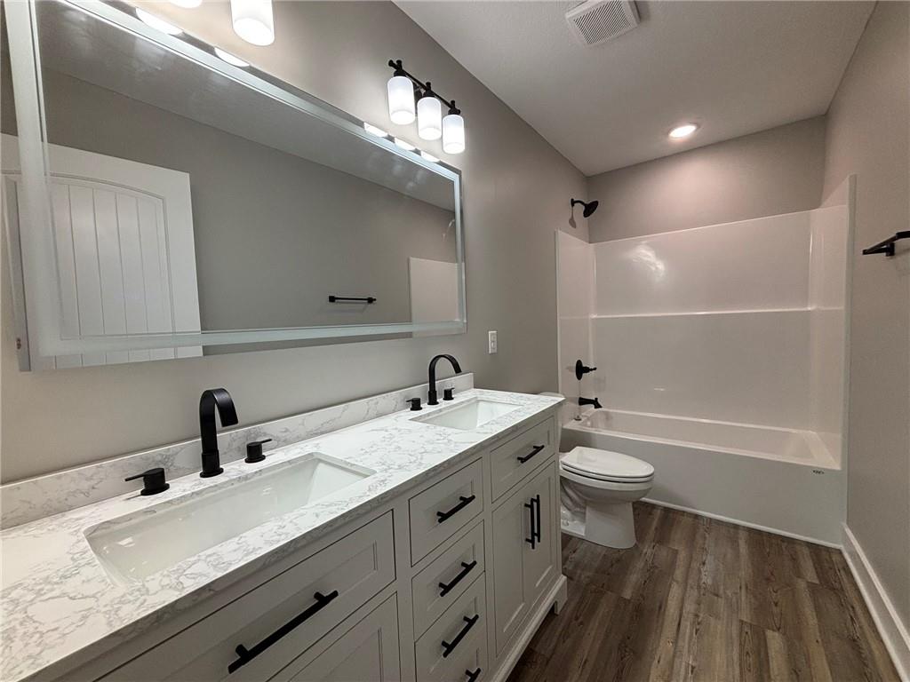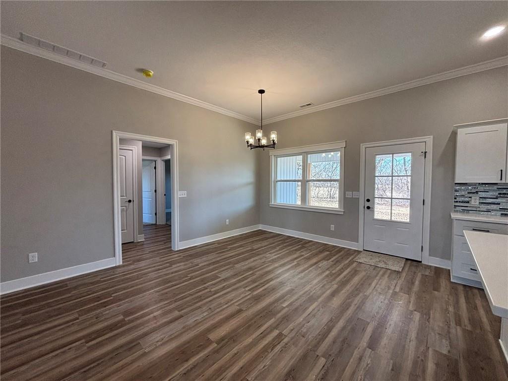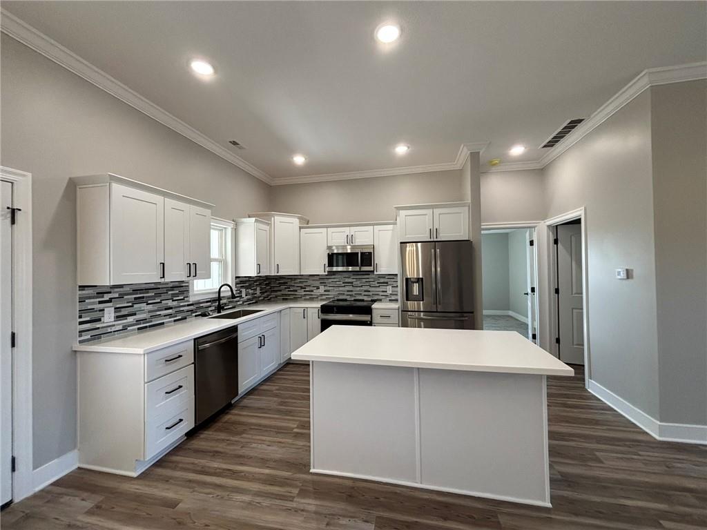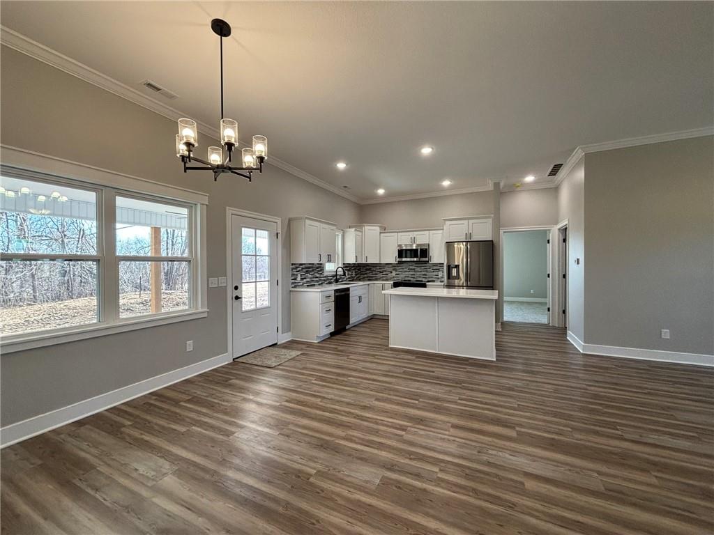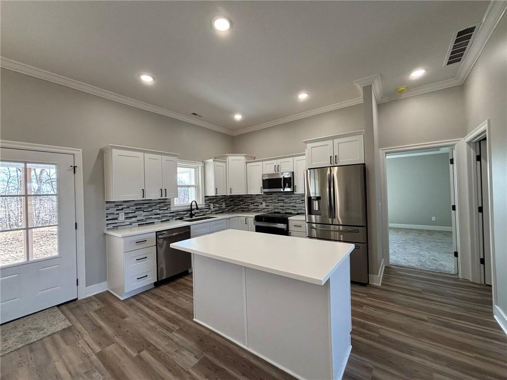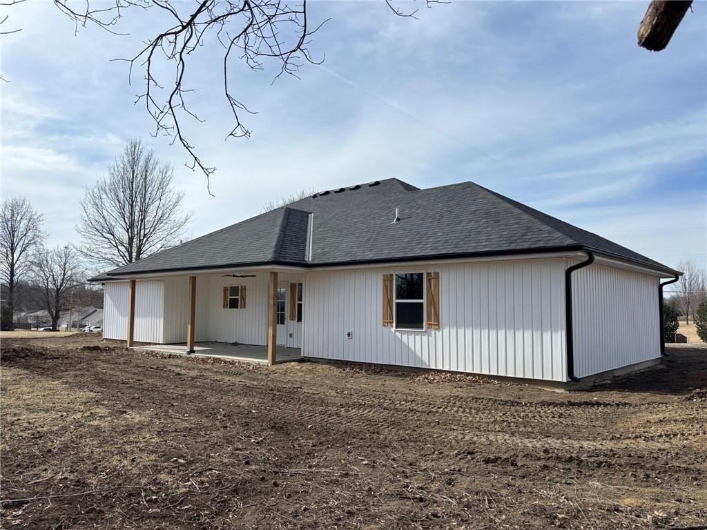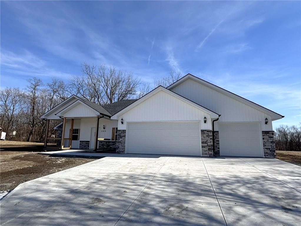 Fabulous new home on acreage in Savannah! This all-level, 4-bedroom ranch home has just been completed and is ready for you to move right in. You’ll be immediately impressed by the outstanding curb appeal featuring a stone-accented, vinyl-sided exterior, concrete driveway, covered front entry, and oversized 3-car attached garage. Step inside to soaring ceilings and an open-concept floor plan that seamlessly connects the living room, dining area, and kitchen, all enhanced with crown molding. The stunning kitchen offers a large island topped with quartz countertops, abundant white cabinetry with soft-close doors and drawers, and stainless steel appliances—all included for your cooking enjoyment. The split-bedroom design provides excellent privacy for the primary suite, which features a spacious walk-in closet and a beautiful ensuite bath with a heated, lighted mirror, dual-bowl vanity, and a tiled walk-in shower. Three additional bedrooms offer ample closet space and share a hall bath with a dual-bowl vanity. The oversized attached 3-car garage includes openers and a convenient walk-out door. End your day relaxing on the private covered patio, overlooking the back portion of your 1.7-acre level lot—perfect for enjoying peaceful evenings and watching local wildlife.
