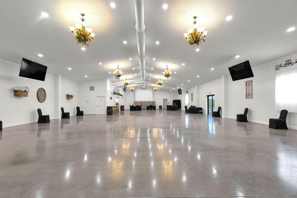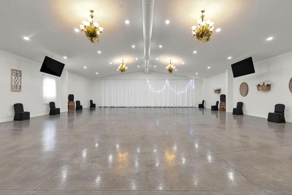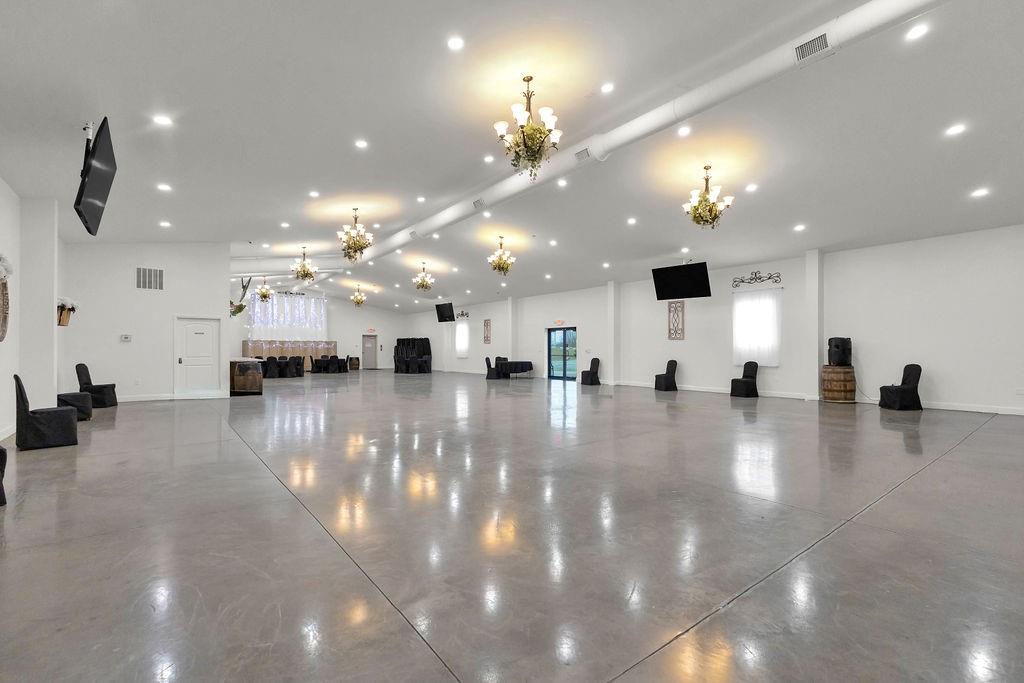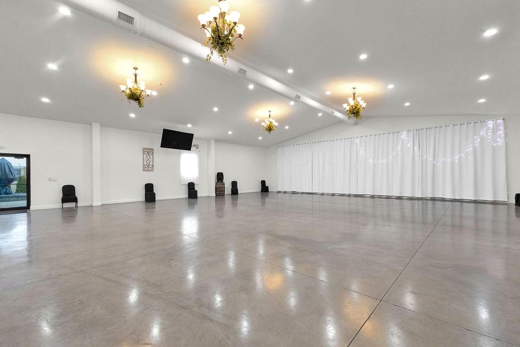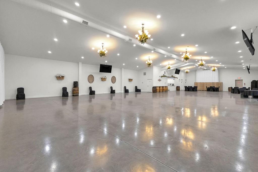 5,000 sq ft building for lease. This building is in pristine condition, only 3 years old with tons of possibilities. Currently an event center with wide open space but could be built out to suit tenant's needs. Features a small kitchen, 2 bathrooms, storage area, drive in door, and abundant parking. All electric. Could remain an event center, or could become a space for professional services, office space, retail, health and wellness center, childcare, etc.