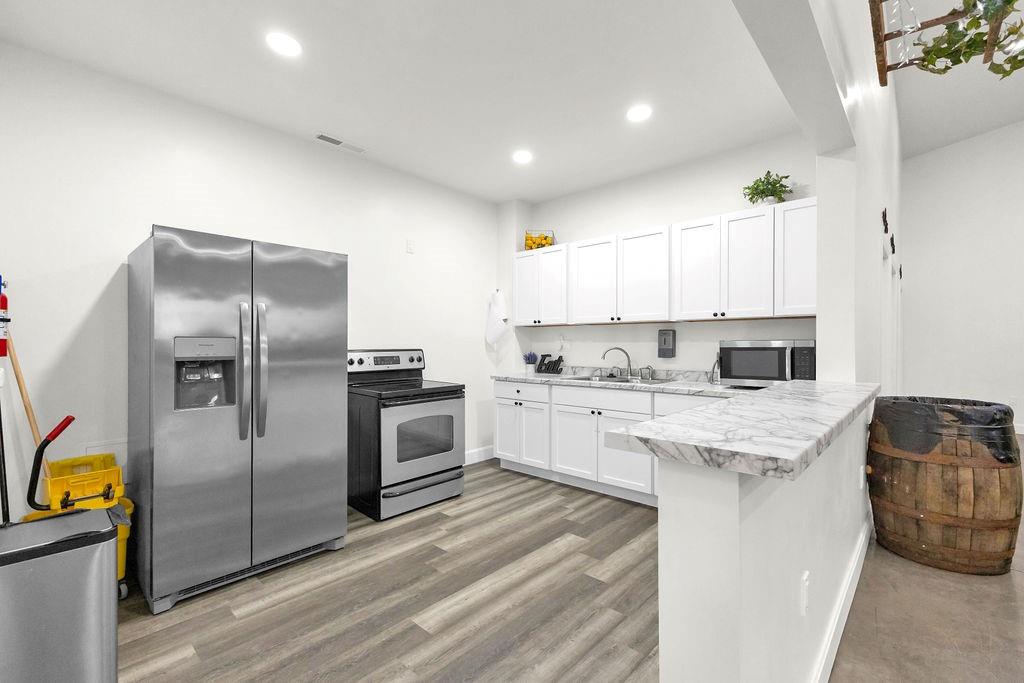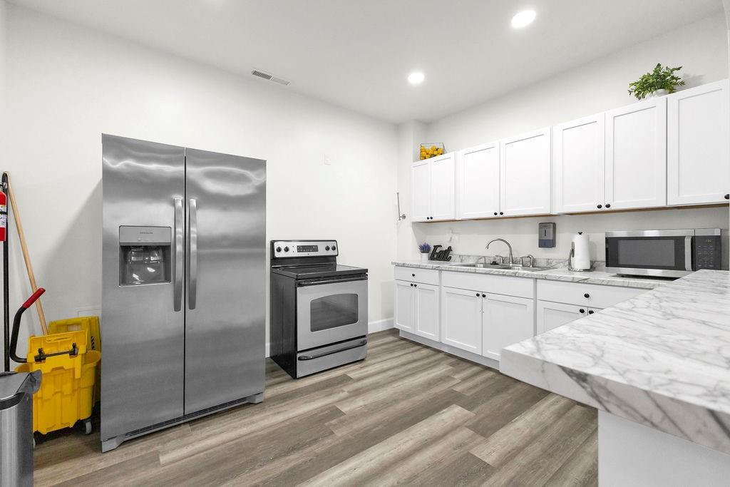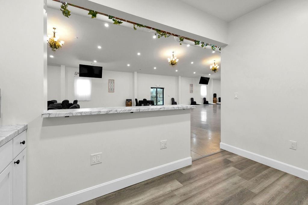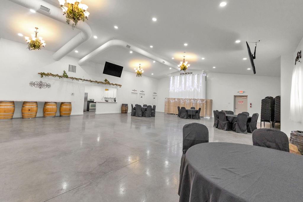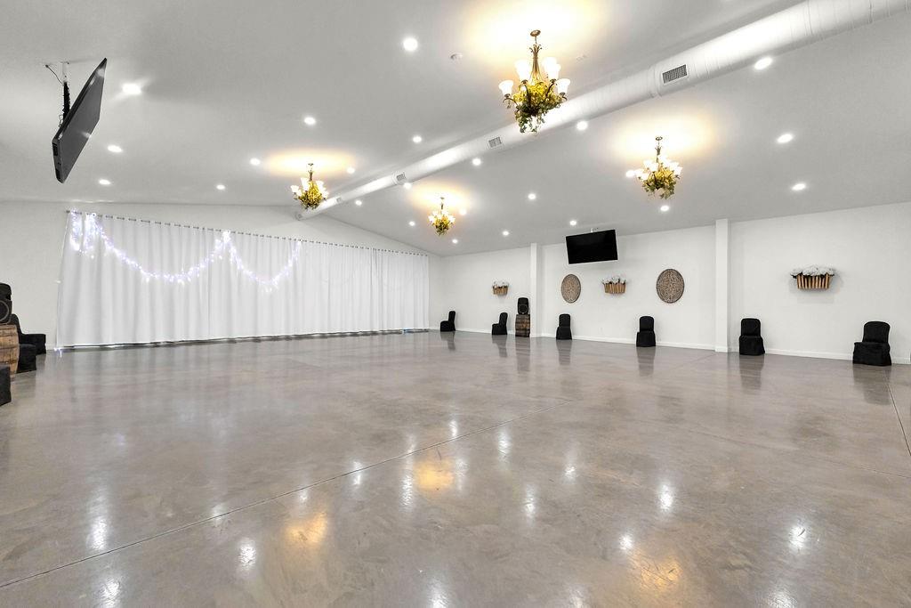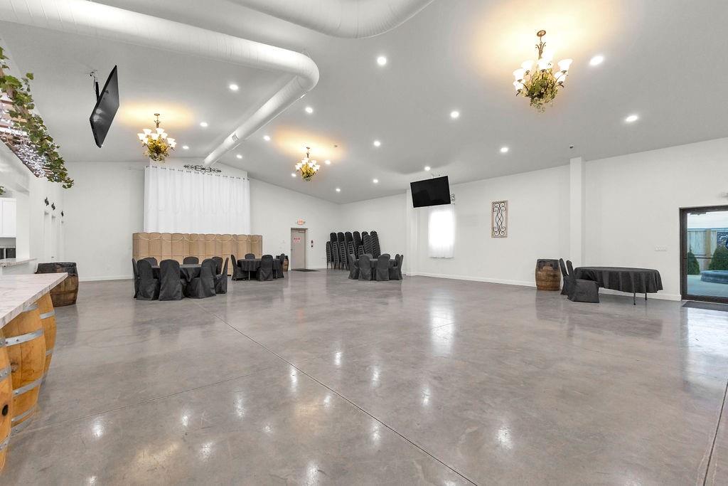 5,000 sq ft building for lease. This building is in pristine condition, only 3 years old with tons of possibilities. Currently an event center with wide open space but could be built out to suit tenant's needs. Features a small kitchen, 2 bathrooms, storage area, drive in door, and abundant parking. All electric. Could remain an event center, or could become a space for professional services, office space, retail, health and wellness center, childcare, etc.
