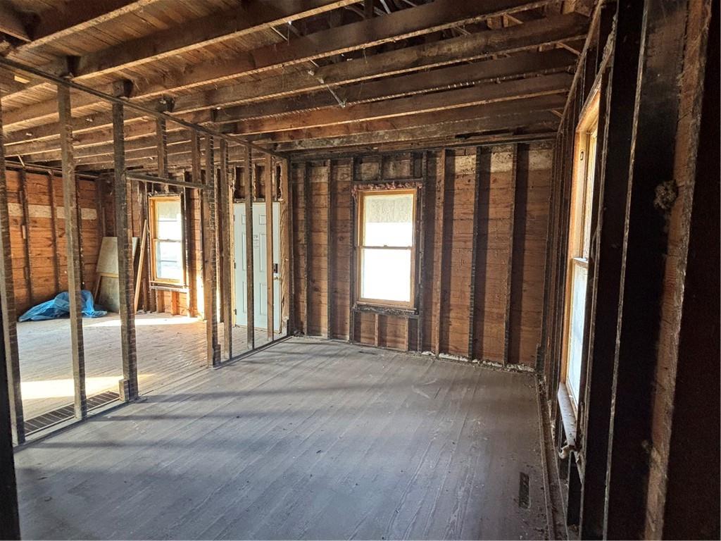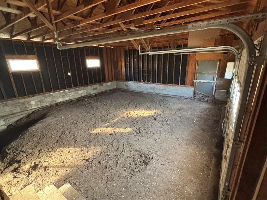 This property has been cleaned out and cleaned down to the studs so it's ready for an investor contractor to take over and finish it up. This house is set up for a 3 bedroom, 1.5 bath home with large living room/dining room, and 2 car garage, unfiinished basement, and sits on a 7.5 acre lot. Current owner purchased this property with the intention of finishing the property and renting it or selling it but plans changed. They tore out all old cabinets, bath fixtures, broken sheetrock, ceilings, and flooring and hauled it off. Also installed an electrical box. Garage could be finished into a large rec room if buyer wants to build a detached garage, which would add valuable square footage to the house. Lots of potential!!