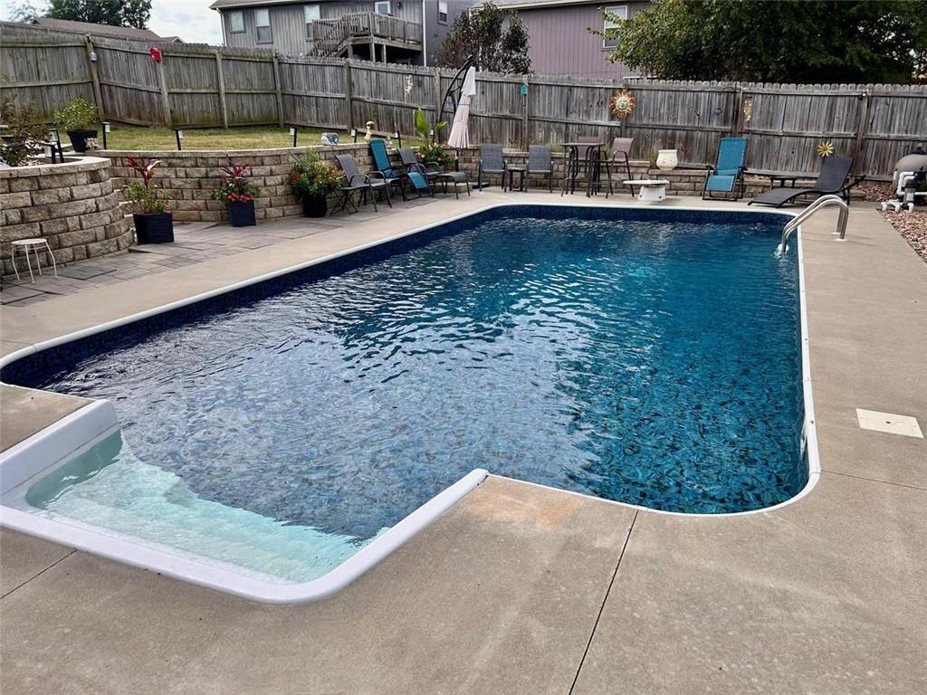 Fabulous move in ready ranch style home in Thousand Oaks! 4 bedrooms and 3 full baths this home has everything you need. The brand-new front porch welcomes you into the entryway that opens up into the large open concept living/dining room combo, boasting vaulted ceilings and a cozy fireplace. The kitchen is nicely updated and fully equipped with quartz countertops and stainless-steel appliances. The rest of the main floor consists of 3 bedrooms, including the master with newly remodeled ensuite and walk in closet, a second full bathroom for guests, and laundry. Additional living space in the finished basement, along with the 4th bedroom and 3rd full bath. Take the entertaining outside- walk out to your newly transformed saltwater in-ground pool with a new liner. Enjoy summer days lounging around the pool, or enjoy watching from the back deck, re-built in 2022. Extra storage, pool room, 2 car garage, and fenced in yard are more features you'll enjoy with this home. New HVAC in 2024!