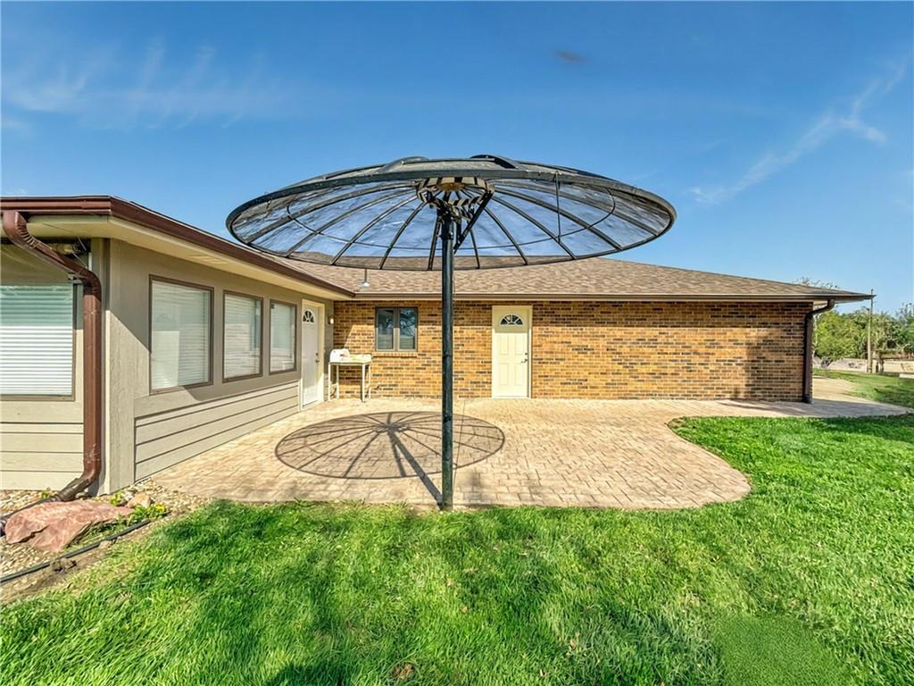 Country setting with incredible views on approximately 2.95± acres—hard to find this kind of space with highway frontage and Maryville schools. This well-built ranch offers 3 bedrooms and 2 baths on the main level, including a primary suite with main floor laundry. The layout features a large living room with fireplace, formal dining area, and an added sunroom with walk-out—perfect for taking in the surrounding farmland views. The basement adds additional living space with a second family room, non-conforming bedroom, and full bath—ideal for guests, hobbies, or extra room to spread out. Outside is where this property really stands out. Stamped concrete patio for entertaining, large detached garage/shop with an additional office area, and open acreage with beautiful views in every direction. Peaceful country living with convenience to town—this one offers space, function, and potential all in one