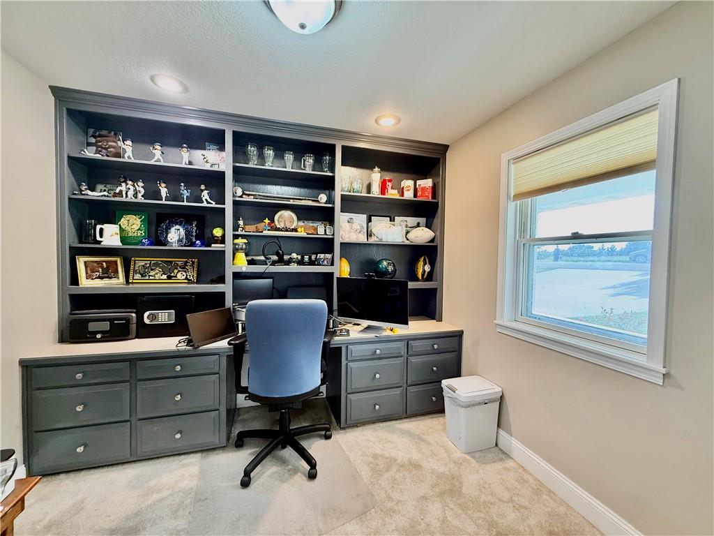 Stunning Ranch Home with Indoor Pool on 2 Acres! Welcome to your own private retreat! This remarkable ranch-style home offers over 4,000 sq. ft. of living space and feels like a vacation every day. Nestled on a beautiful 2-acre lot in a peaceful cul-de-sac on the edge of town, this 4-bedroom, 3-bathroom home is packed with features you’ll love. Step inside to find a spacious and open floor plan featuring a large kitchen with abundant cabinetry and counter space — perfect for entertaining or family gatherings. The oversized great room boasts a cozy gas fireplace and overlooks the impressive indoor pool, which is surrounded by floor-to-ceiling windows offering year-round enjoyment and picturesque views. The luxurious primary suite includes a generous bedroom, large walk-in closet, and spa-like bath with a tiled walk-in shower and double sinks. Additional main-floor highlights include a designated home office with built-in shelving and a convenient laundry room. The finished basement offers even more space to relax and entertain, including a large bonus room, a family/movie room with a built-in bar area, and plenty of storage. Car enthusiasts and hobbyists will appreciate the four-car garage setup: A third bay designed for RV parking A fourth garage perfect for storage or workshop use Enjoy outdoor living with the expansive stamped concrete patio and mature landscaping. This home truly has it all — space, style, function, and a one-of-a-kind indoor pool experience. Don’t miss this rare opportunity to own a home that checks every box!