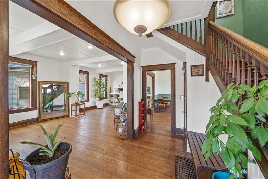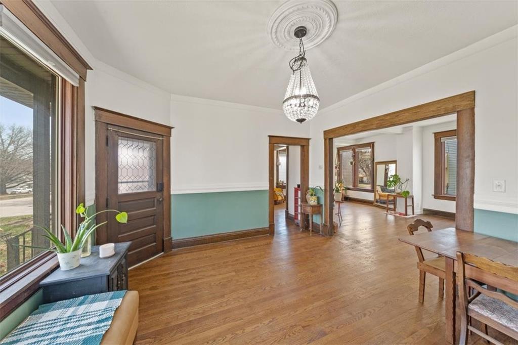 Come see this charming home that perfectly blends historic character with modern updates! Situated on a desirable corner lot, this home welcomes you with a spacious wrap-around porch—ideal for relaxing and enjoying the surroundings! Step inside to find a warm and inviting main level featuring lovely dark wood floors and beautiful wood trim that highlight the home’s timeless appeal. Natural light pours in throughout, creating an open and airy feel from room to room! The living spaces flow comfortably, offering a great setup for both everyday living and entertaining. The bedrooms provide a cozy retreat with soft carpeting underfoot, while maintaining the home’s classic charm. Additional spaces offer flexibility to suit your needs—whether you’re looking for a home office, hobby space, or extra room to spread out. Conveniently located close to shopping, dining, and more—this is one you won’t want to miss. Schedule your showing today!