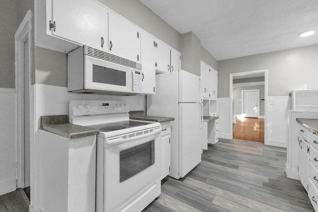 Recently remodeled from top to bottom, this all-electric home blends modern updates with timeless charm. The main floor features two comfortable bedrooms, two full bathrooms, and beautiful hardwood floors throughout. A formal dining room and large kitchen provide ample space for both daily living and entertaining. Upstairs, the attic offers room for future expansion, while the basement includes two non-conforming bedrooms for added flexibility—perfect for an office, guest space, or hobbies. Exterior highlights include new flooring throughout, durable vinyl siding, a welcoming front porch, and a detached one-car garage. The enclosed back porch provides a cozy retreat or extra storage space.