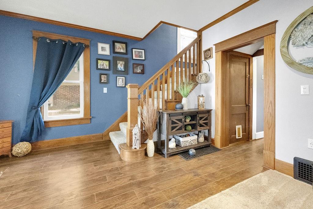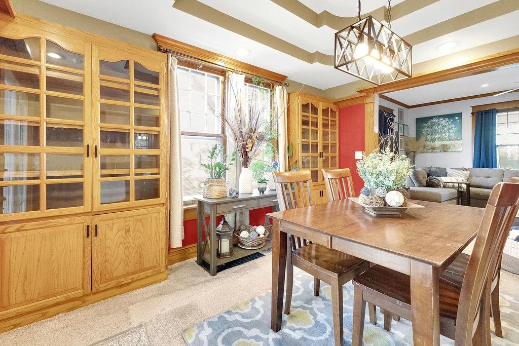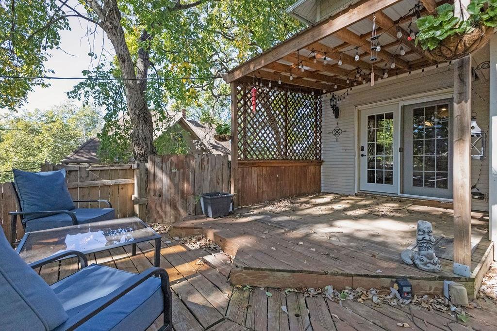 Charming two-story home blending timeless character with modern comfort! Step onto the welcoming covered front porch and into an inviting open concept main floor with rich wood trim and natural light throughout. The spacious living room flows into a formal dining room featuring a tray ceiling and French doors that open to the back deck - perfect for entertaining or relaxing outdoors. The updated kitchen includes appliances, sleek countertops, and tile backsplash, plus a convenient main floor laundry nearby. Upstairs you’ll find three comfortable bedrooms and a beautifully updated bath with a jetted tub and separate shower. A full unfinished basement with a half bath provides excellent storage or hobby space. Outside, enjoy the fenced backyard with a spacious deck area under mature shade trees. A detached one car garage and off-street parking add extra convenience. This home offers classic charm, modern touches, and great outdoor living!