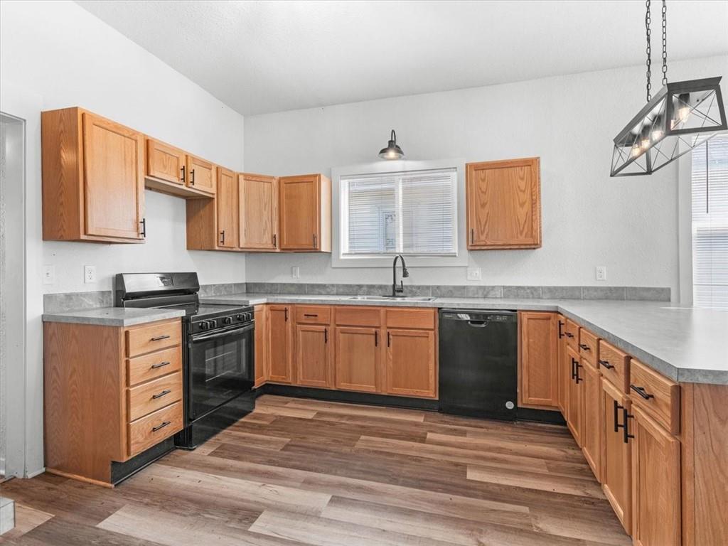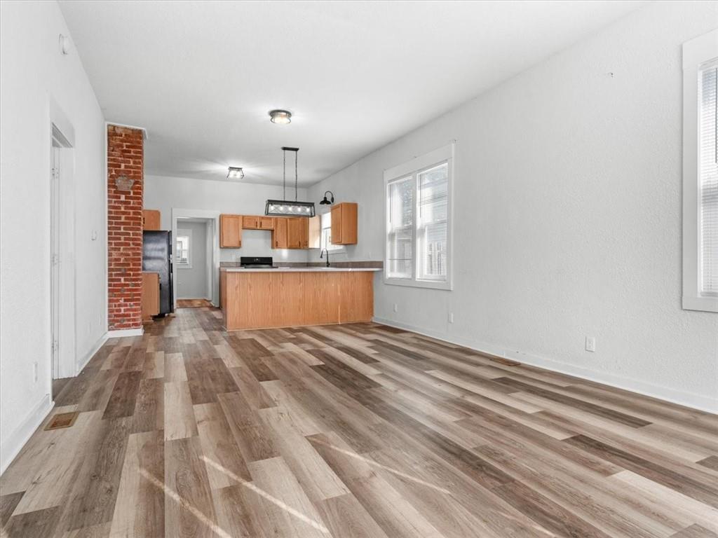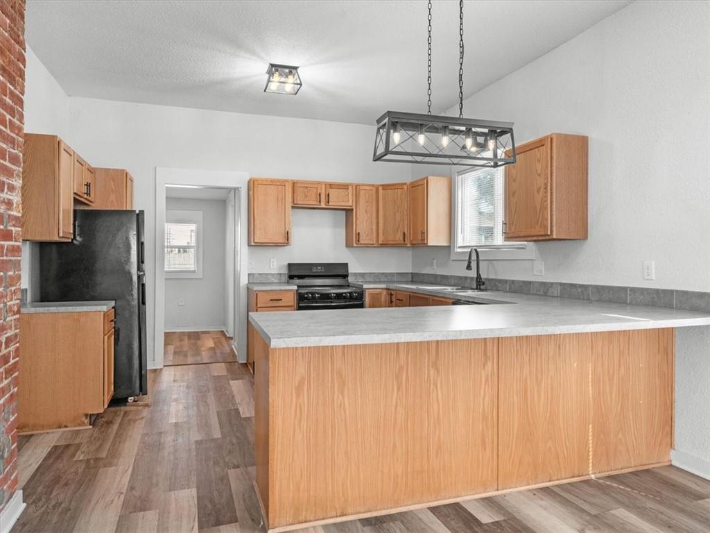 Move right in to this updated 2-bedroom, 2-bath home with modern touches throughout! The spacious kitchen is equipped with a stove, refrigerator, and dishwasher, making meal prep a breeze. Vinyl flooring flows through the open living spaces, giving the home a fresh and low-maintenance feel. Main floor laundry adds everyday convenience, while the covered porch offers a perfect spot to relax. With off-street parking and a fenced backyard, this home is as practical as it is charming.