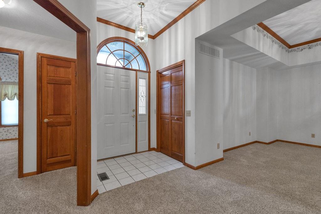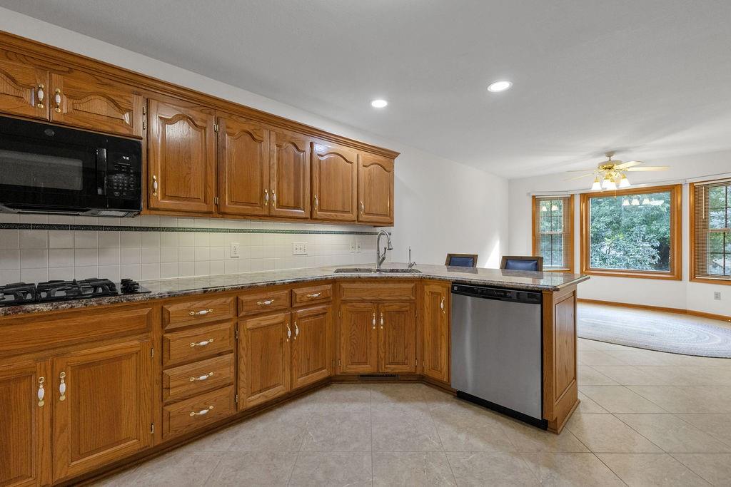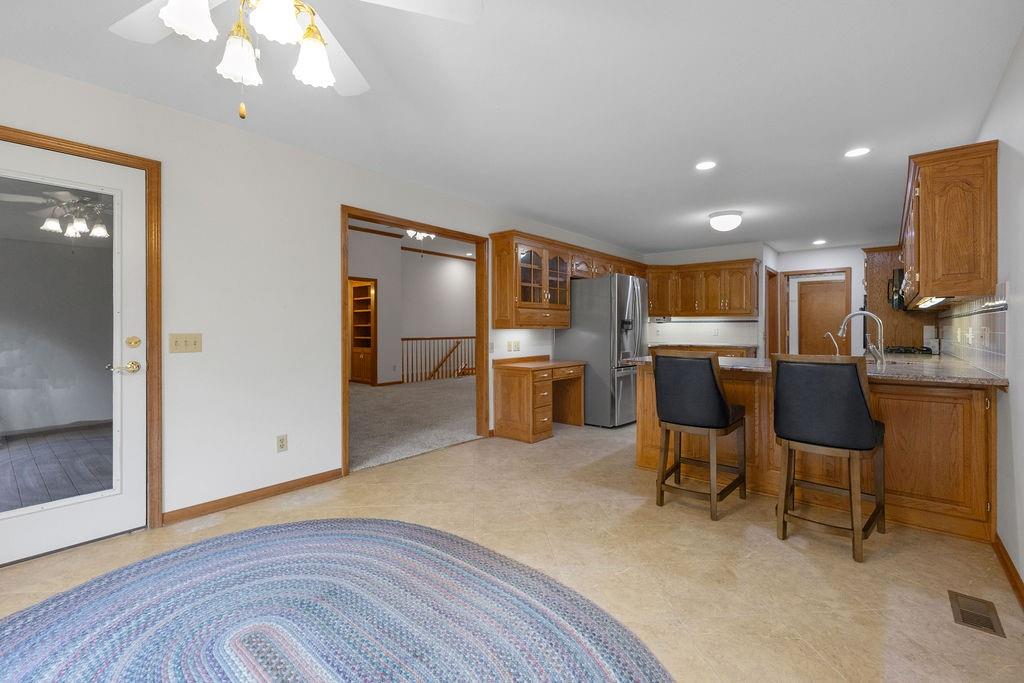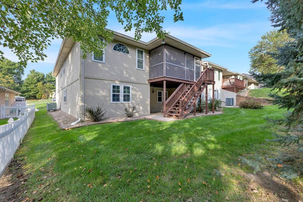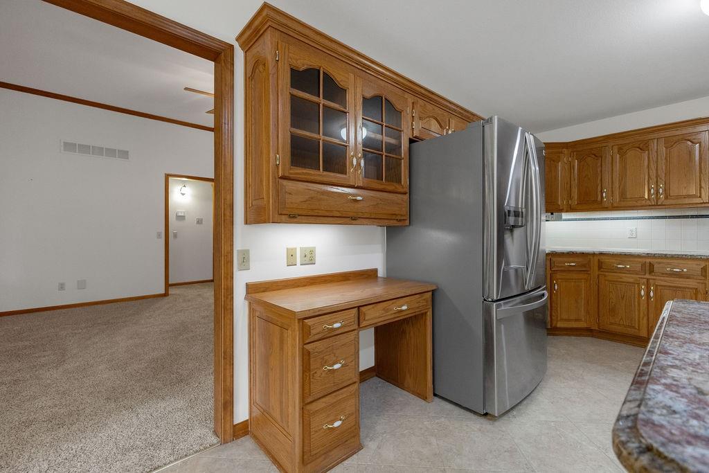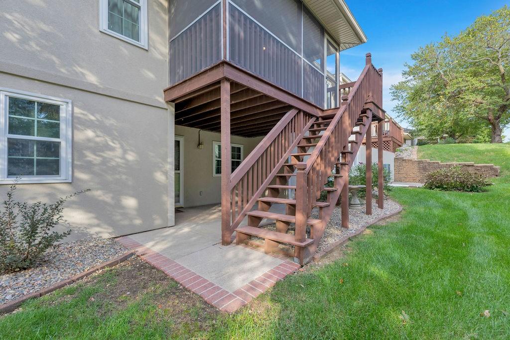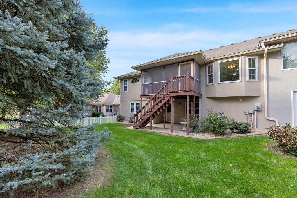 This beautifully cared-for, one-owner townhome offers nearly 3,000 square feet of finished living space and showcases pride of ownership at every turn. Step inside the welcoming tiled foyer with a coat closet and immediately feel at home. The formal dining room flows seamlessly into the formal living room, creating an elegant setting for entertaining. The spacious eat-in kitchen is a chef’s dream, featuring quartz countertops, abundant cabinetry including a pantry with pull-out shelves, gas cooktop, electric wall oven, built-in microwave and dishwasher, and stainless steel refrigerator. Enjoy morning coffee in the cozy dining nook or relax on the screened-in porch surrounded by mature trees. The primary bedroom suite is a serene retreat with a tray ceiling and a spa-like ensuite bath offering dual sinks, a jetted soaking tub, separate shower, and dual walk-in closets – including one custom designed with island storage. A sun-filled guest bedroom with vaulted ceiling, a full hall bath with shower, and a spacious laundry room with built-in storage complete the main level. The finished walk-out lower level is designed for comfort and entertainment, boasting a large recreation room with built-in entertainment center and surround sound speakers, and direct access to the walk-out patio. Two additional bedrooms, a full bath with shower, two oversized storage rooms, and under-stairs storage provide ample space for guests and organization. Additional highlights include an attached garage with epoxy flooring and attic access, central vacuum system, and the peace of mind of a completed pre-inspection with repairs already completed. Every inch of this home reflects thoughtful design, meticulous upkeep, and timeless quality—making it a rare find in one of St. Joseph’s most desirable neighborhoods.