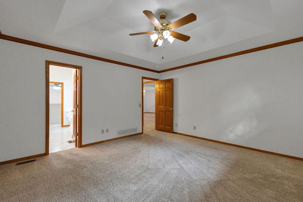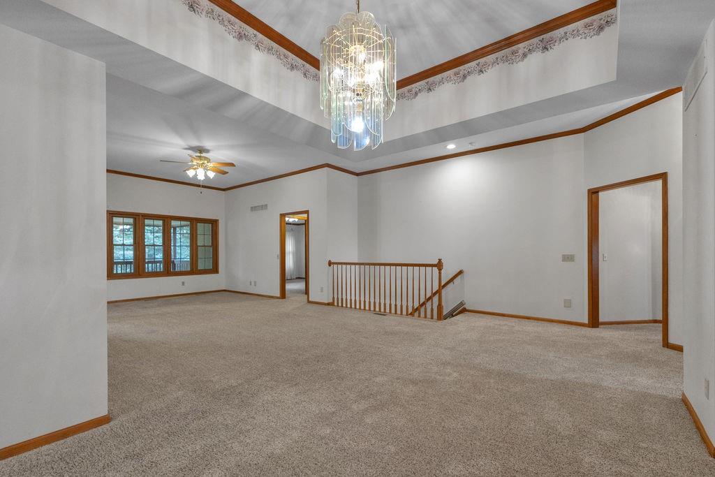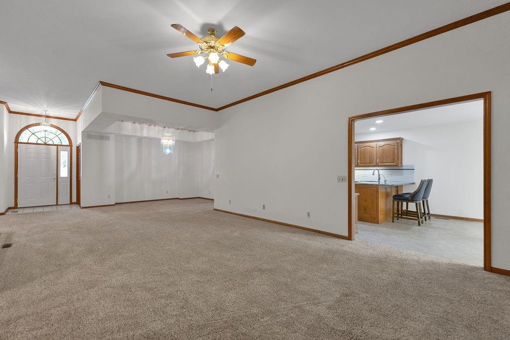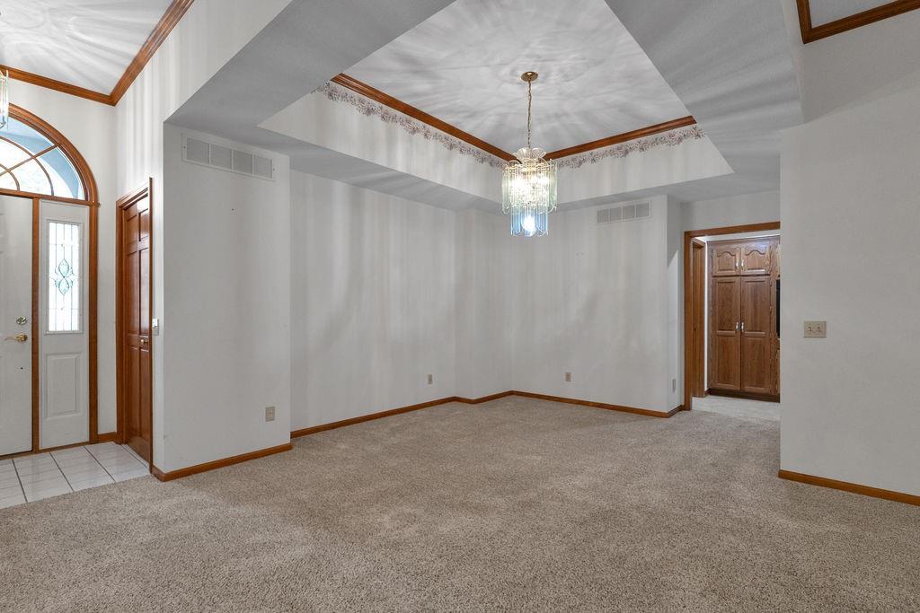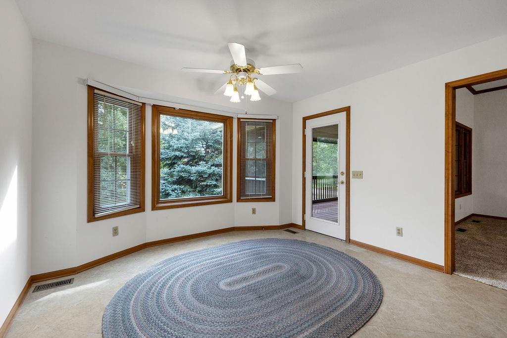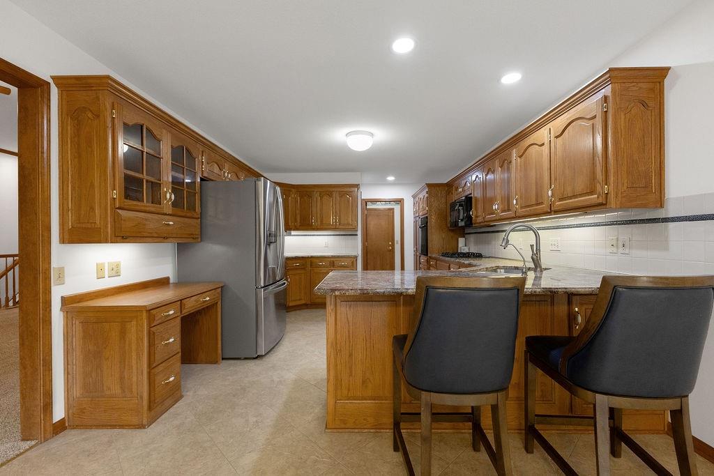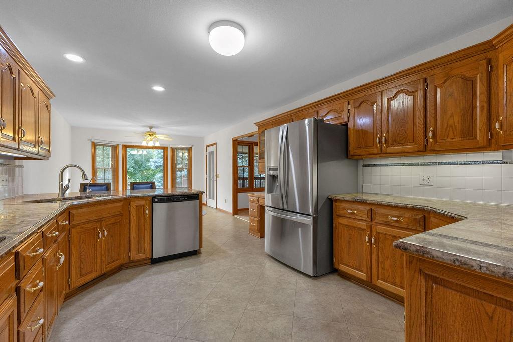This beautifully cared-for, one-owner townhome offers nearly 3,000 square feet of finished living space and showcases pride of ownership at every turn. Step inside the welcoming tiled foyer with a coat closet and immediately feel at home. The formal dining room flows seamlessly into the formal living room, creating an elegant setting for entertaining. The spacious eat-in kitchen is a chef’s dream, featuring quartz countertops, abundant cabinetry including a pantry with pull-out shelves, gas cooktop, electric wall oven, built-in microwave and dishwasher, and stainless steel refrigerator. Enjoy morning coffee in the cozy dining nook or relax on the screened-in porch surrounded by mature trees. The primary bedroom suite is a serene retreat with a tray ceiling and a spa-like ensuite bath offering dual sinks, a jetted soaking tub, separate shower, and dual walk-in closets – including one custom designed with island storage. A sun-filled guest bedroom with vaulted ceiling, a full hall bath with shower, and a spacious laundry room with built-in storage complete the main level. The finished walk-out lower level is designed for comfort and entertainment, boasting a large recreation room with built-in entertainment center and surround sound speakers, and direct access to the walk-out patio. Two additional bedrooms, a full bath with shower, two oversized storage rooms, and under-stairs storage provide ample space for guests and organization. Additional highlights include an attached garage with epoxy flooring and attic access, central vacuum system, and the peace of mind of a completed pre-inspection with repairs already completed. Every inch of this home reflects thoughtful design, meticulous upkeep, and timeless quality—making it a rare find in one of St. Joseph’s most desirable neighborhoods.