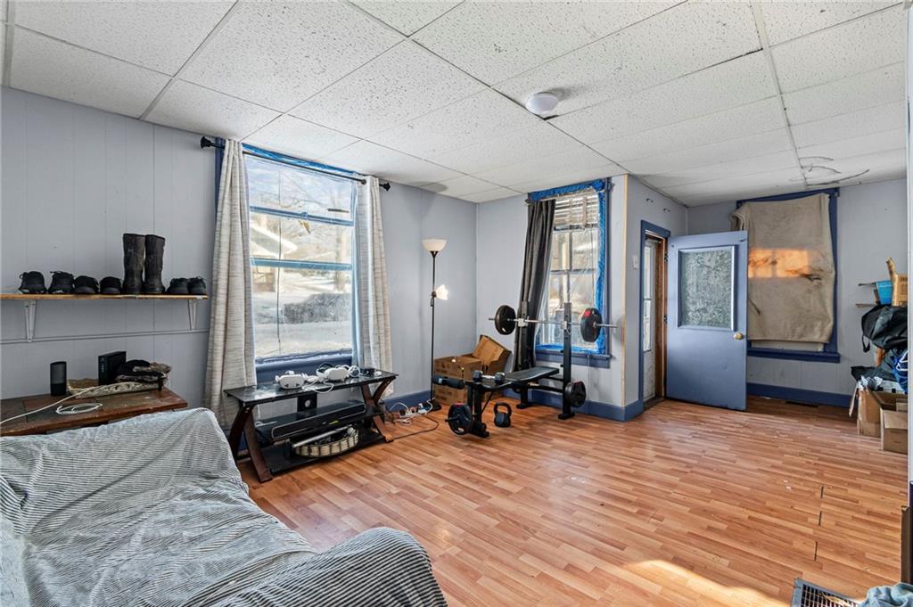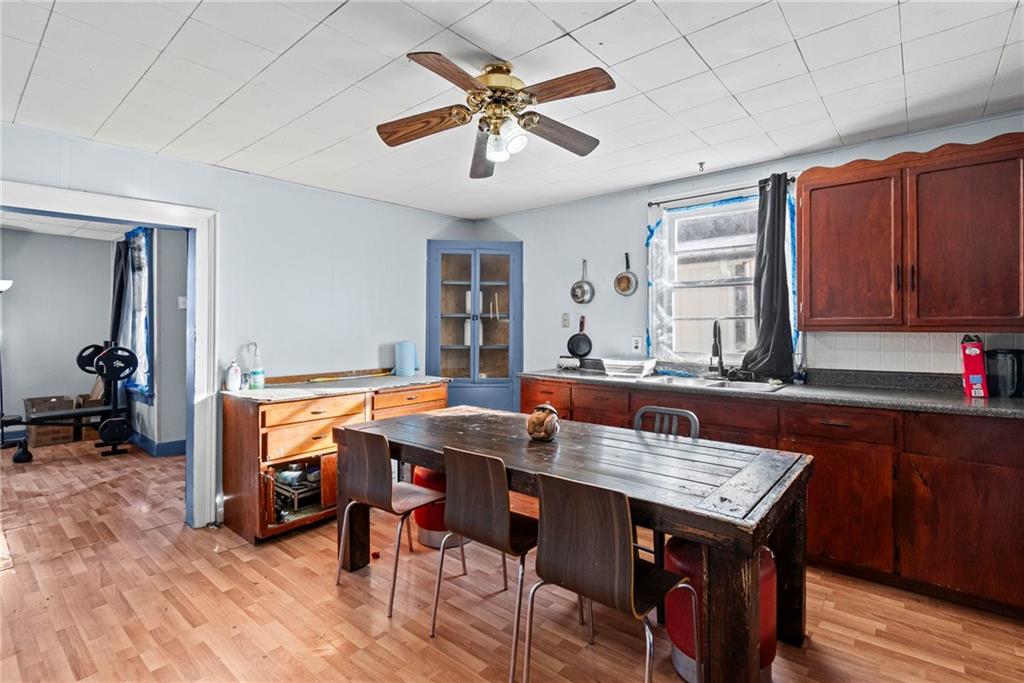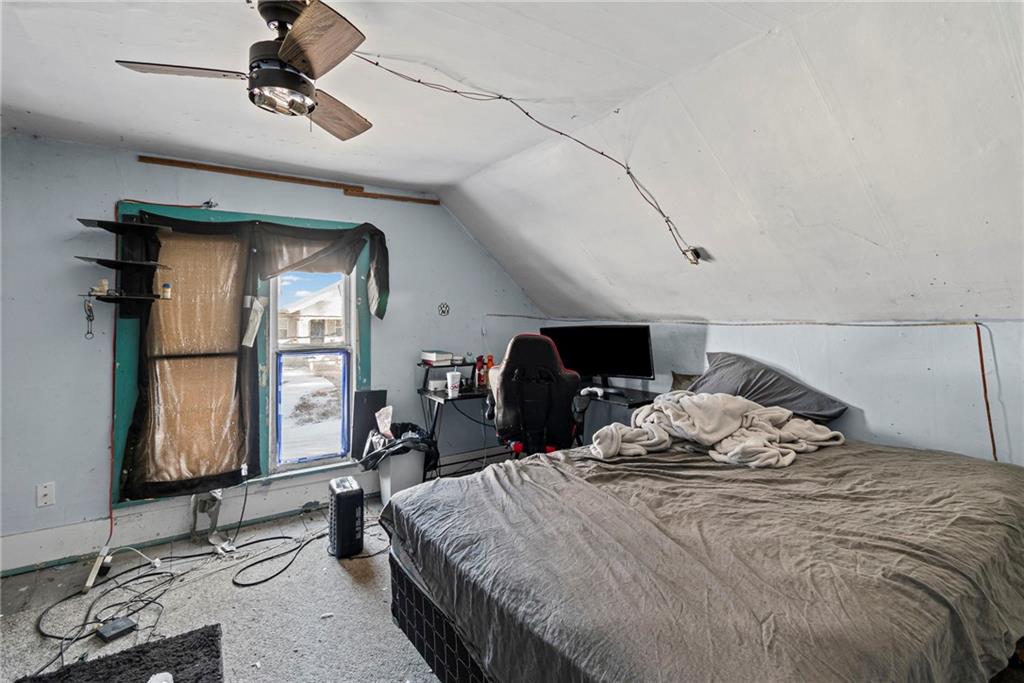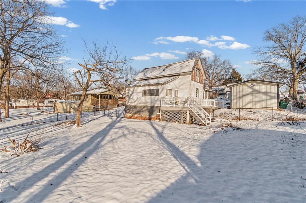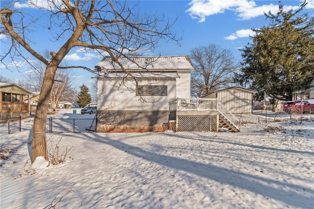 Welcome home! This 1.5-story home has space for everyone! The main floor includes a bonus room off the living area, a bedroom, and a designated laundry space, with three additional bedrooms upstairs. The kitchen provides ample cabinet storage and counter space! The full unfinished basement offers usable space for storage, projects, or equipment, with a separate area that opens to the backyard. Outside features include an oversized deck with ramp access, a fenced yard, and a double gate ideal for camper or trailer parking. A detached shop with a concrete floor adds workspace and storage. Located near the community gym and close to local amenities, this home offers functional spaces inside and out.