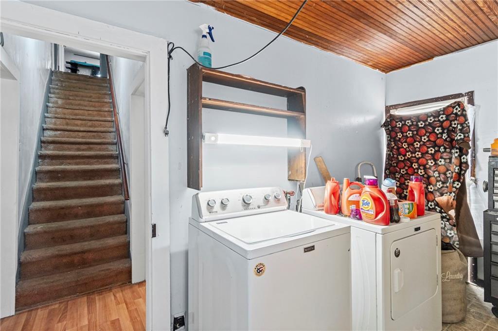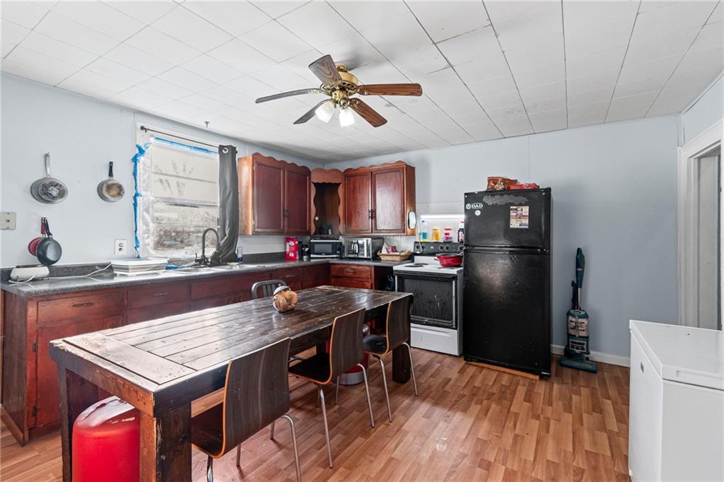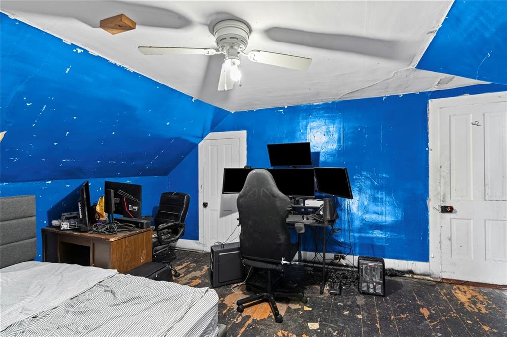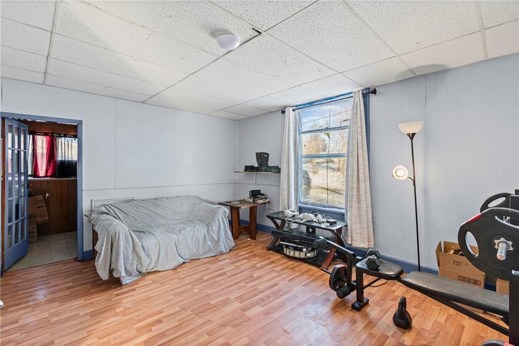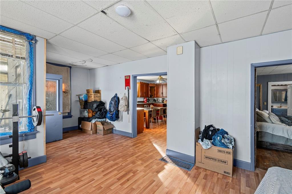 Welcome home! This 1.5-story home has space for everyone! The main floor includes a bonus room off the living area, a bedroom, and a designated laundry space, with three additional bedrooms upstairs. The kitchen provides ample cabinet storage and counter space! The full unfinished basement offers usable space for storage, projects, or equipment, with a separate area that opens to the backyard. Outside features include an oversized deck with ramp access, a fenced yard, and a double gate ideal for camper or trailer parking. A detached shop with a concrete floor adds workspace and storage. Located near the community gym and close to local amenities, this home offers functional spaces inside and out.