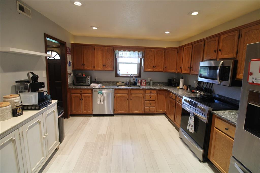 Step outside the city limits and into space, comfort, and a setting you’ll love coming home to. This beautifully maintained raised ranch sits on 2.63 acres MOL offers the perfect mix of open living and peaceful surroundings. Inside, you’ll find a spacious layout with large rooms, an open floor plan, and a kitchen designed to impress—featuring granite countertops and plenty of room to gather. With 3 bedrooms and 3 full bathrooms, 2 car attached garage, there’s space for everyone, plus the convenience of main floor laundry. The finished basement adds even more versatility with a full bathroom and a built-in storm shelter for peace of mind. Enjoy quiet mornings or evening sunsets from the back deck, or relax on the patio while taking in the wide-open views and wildlife just beyond your backyard. Schedule your showing today!