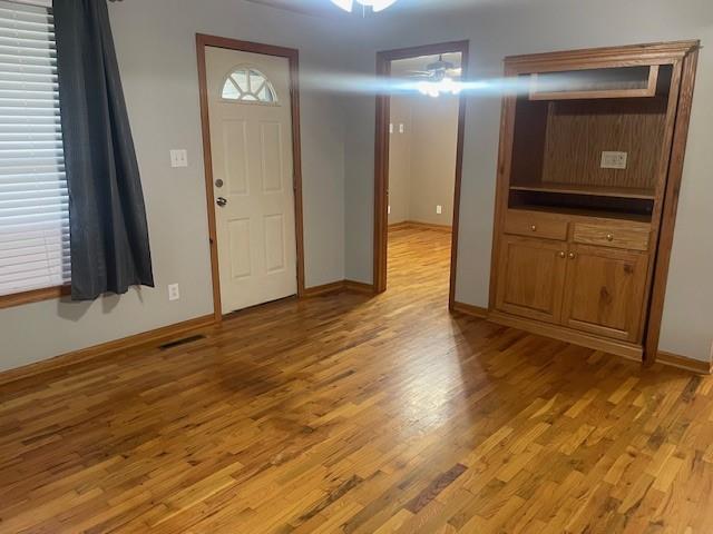 Move in condition home with vinyl siding and updated windows plus an oversized 2 car garage, large covered gazebo, & fenced backyard. Enter this home & find a room full of cabinets, pullouts, counter space, pantry, desk, file cabinet & hide away ironing board. Features: Eat in kitchen with appliances, main floor laundry room including washer & dryer, hardwood floors, built ins galore, plantation shutters, ceiling fans, no carpet, covered front porch. Impressive 2 car garage has heat, window unit, cabinets, work bench with electric outlets, vacuum system for woodworking, pegboard walls, & attic for storage. Home is well taken care of. Corner lot & low taxes.