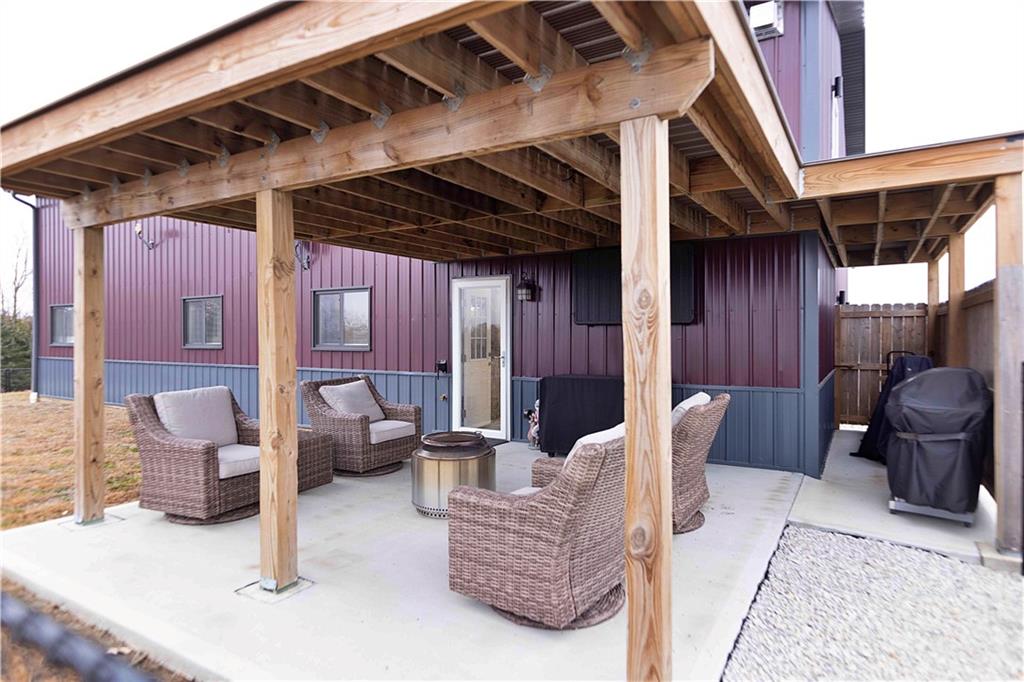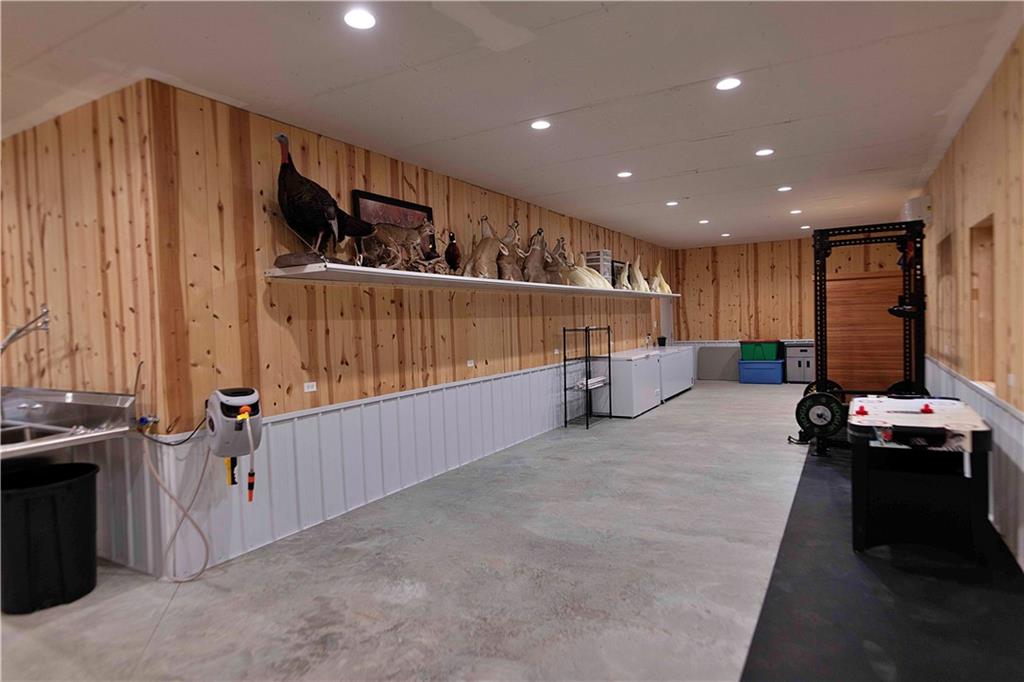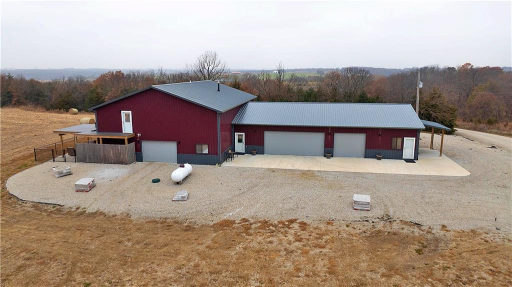 Presenting an expansive Home & Shop Combo Building on 40+- Acres near Ridgeway, MO. The building is as impressive as it is expansive. It boasts 6 bedrooms, 3 bathrooms, 3 different garage type areas, 2 kitchens, 2 family rooms, an office, a dining room and a taxidermy shop. This is truly one that you will have to see to believe! 10' ceilings give the first floor living space an open feeling where the dining room, living room and kitchen all flow together. The living room features a propane fireplace and adjoining office. There are a total of 4 bedrooms on the first floor, with the primary bedroom also including a private, full bathroom. The guest bathroom is spacious, and includes washer and dryer hook-ups. The second floor is a private suite unto itself. The primary bedroom features a propane fireplace, adjoining full bath, oversized closet, and the bedroom walks-out to the deck. Other features include a second bedroom with a closet/safe, a living room, a kitchen, plus attic storage space. The main garage is a 3 car layout that adjoins finished shop space that has been used as a taxidermy studio. The studio offers extensive shelf and floor space, an overhead door, and stainless steel sinks. Another garage type room was recently added to the west side of the main building to accommodate a storm shelter, and extra space for a mower, atv, and other outdoor equipment. The 3rd garage type room has been used to store fishing gear, outdoor toys, and scent destroying closets for hunting gear. The farm itself is a 50/50+- combination of tillable acreage and hunting land, in a neighborhood that is known for growing big bucks, and abundant turkeys. The farmer is interested in continuing to farm it on shares, if a new owner is interested. Hunting here is excellent for deer and turkeys, complimented by a pond that produces nice bass, and plenty of panfish.