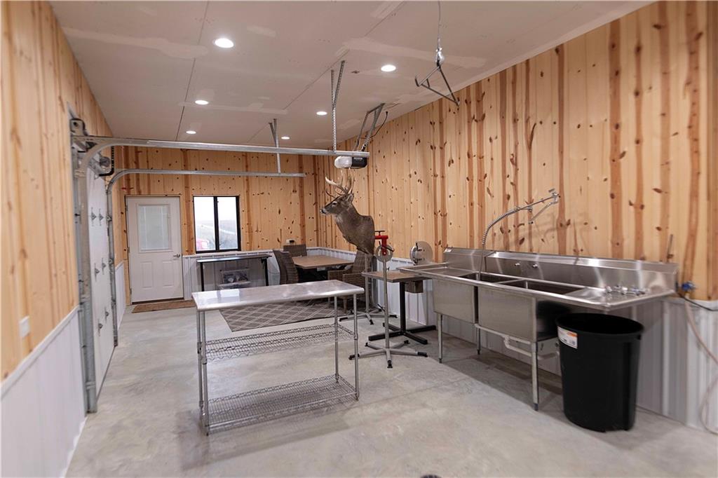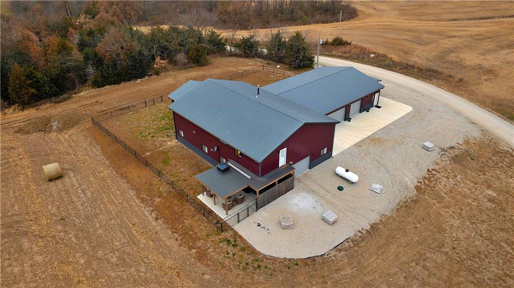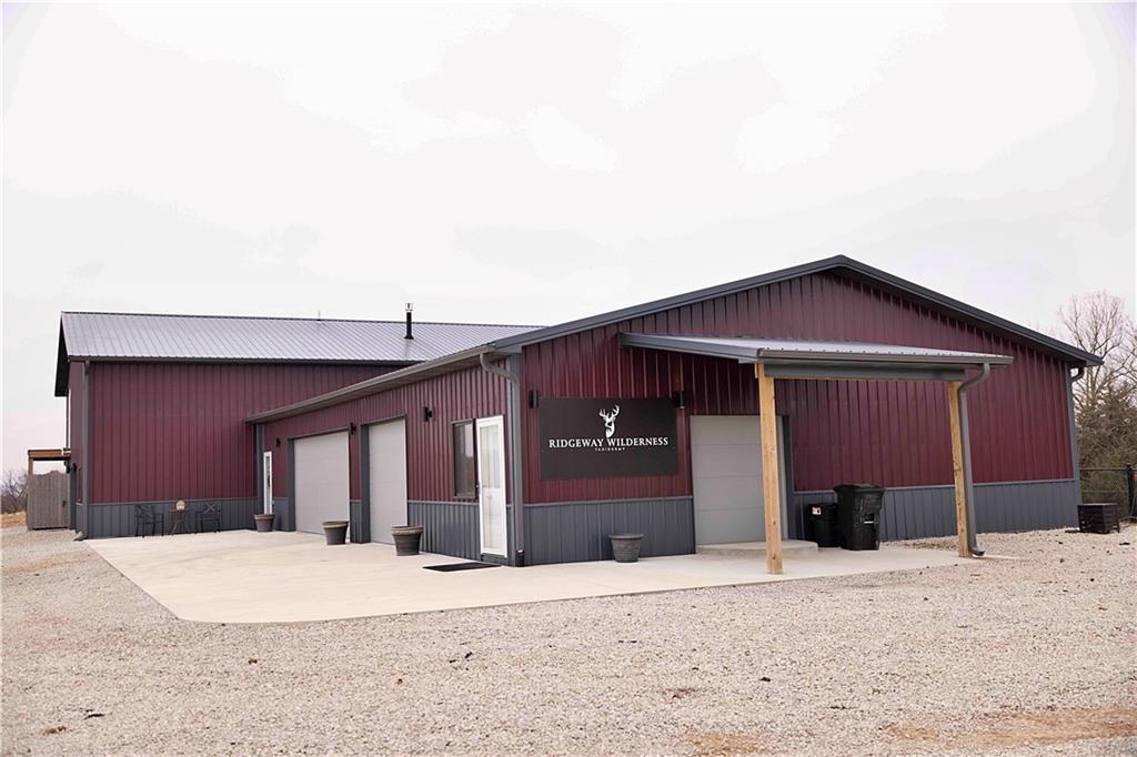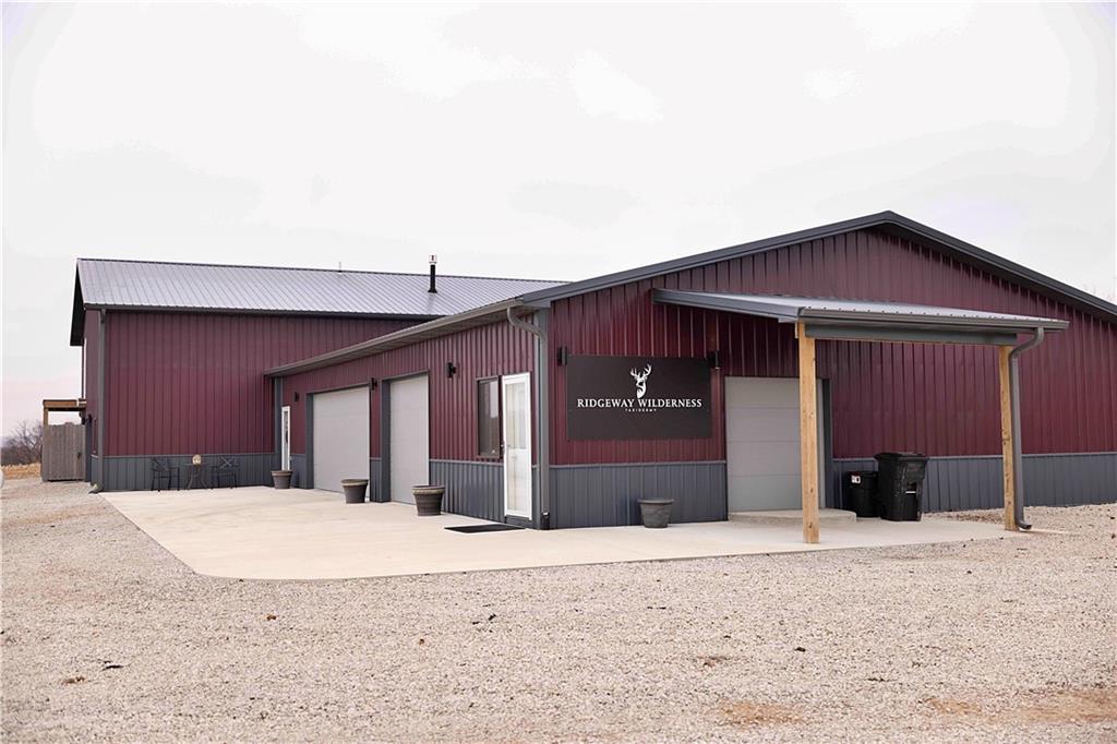 Presenting an expansive Home & Shop Combo Building on 40+- Acres near Ridgeway, MO. The building is as impressive as it is expansive. It boasts 6 bedrooms, 3 bathrooms, 3 different garage type areas, 2 kitchens, 2 family rooms, an office, a dining room and a taxidermy shop. This is truly one that you will have to see to believe! 10' ceilings give the first floor living space an open feeling where the dining room, living room and kitchen all flow together. The living room features a propane fireplace and adjoining office. There are a total of 4 bedrooms on the first floor, with the primary bedroom also including a private, full bathroom. The guest bathroom is spacious, and includes washer and dryer hook-ups. The second floor is a private suite unto itself. The primary bedroom features a propane fireplace, adjoining full bath, oversized closet, and the bedroom walks-out to the deck. Other features include a second bedroom with a closet/safe, a living room, a kitchen, plus attic storage space. The main garage is a 3 car layout that adjoins finished shop space that has been used as a taxidermy studio. The studio offers extensive shelf and floor space, an overhead door, and stainless steel sinks. Another garage type room was recently added to the west side of the main building to accommodate a storm shelter, and extra space for a mower, atv, and other outdoor equipment. The 3rd garage type room has been used to store fishing gear, outdoor toys, and scent destroying closets for hunting gear. The farm itself is a 50/50+- combination of tillable acreage and hunting land, in a neighborhood that is known for growing big bucks, and abundant turkeys. The farmer is interested in continuing to farm it on shares, if a new owner is interested. Hunting here is excellent for deer and turkeys, complimented by a pond that produces nice bass, and plenty of panfish.