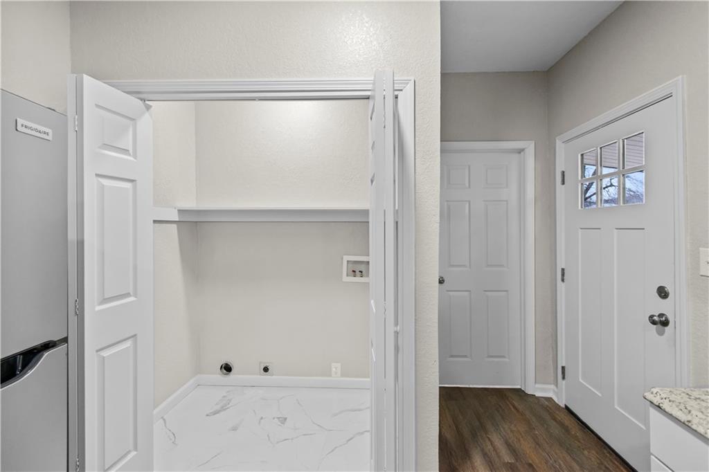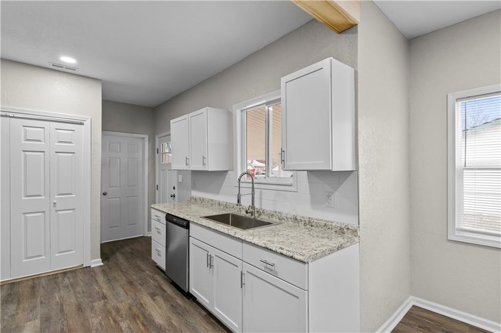 Welcome home to this completely renovated 3-bedroom, 1-bathroom gem situated on a fully fenced corner lot with a 1-car detached garage. This home features low-maintenance vinyl siding and vinyl windows, offering both durability and energy efficiency. Step inside to find a beautifully updated kitchen and bathroom, complete with brand-new appliances and modern finishes. Convenient laundry is located just off the kitchen, adding everyday functionality. Enjoy peace of mind with a new HVAC system and hot water heater, along with new flooring throughout the home. The covered back porch provides a perfect space to relax or entertain, while the spacious yard offers room to enjoy outdoor living. This move-in-ready home combines comfort, style, and functionality — a must-see!