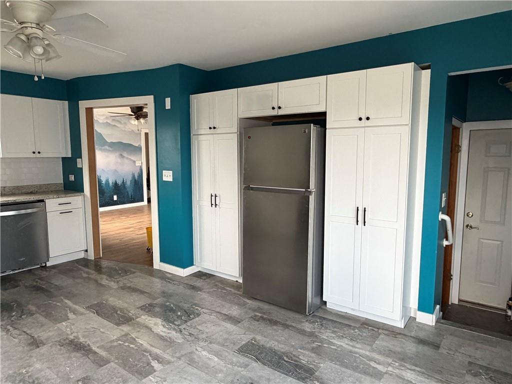 Spacious 3-bedroom, 2 bath Ranch style home located within a short walk to downtown shopping district this home has a lot to offer. Spacious upstairs living room/dining combo is a versatile space customizable for your lifestyle, new kitchen features granite countertops with plenty of cabinet space includes two pantries as well as an area perfect for a breakfast area. Two bedrooms and 1 remodeled (2022) bathroom complete the upstairs. The lower level features a master bedroom with walk-in closet and attached bath with laundry area. There is an unfinished bonus room in the basement great for storage or could be used for another finished basement room. The balance of the lower level is a large family room with endless possibilities. Extensive remodeling has been done over the last 4 years, includes new windows (2023), new flooring on the main level (2025), and new carpet (2026). The one car garage is semi heated and cooled. The spacious yard is fenced with a large deck.