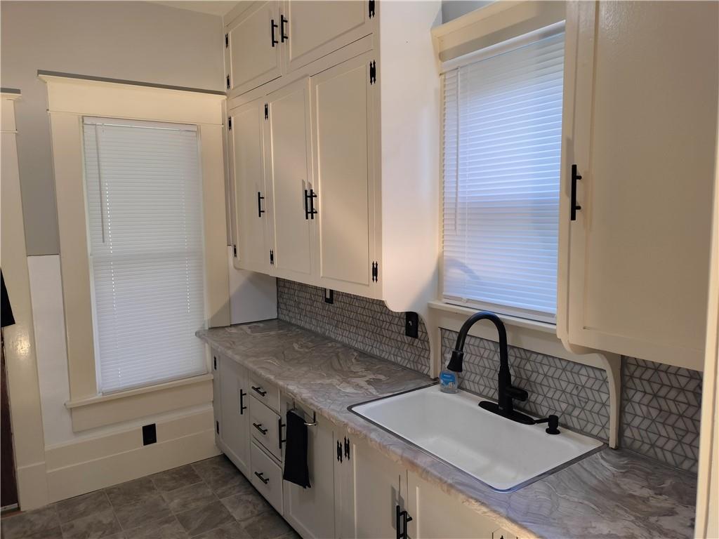 Wow! Great central location 2 bed 1.25 bath home with room/access for additional finished living space in basement or attic. The exterior looks crisp with white vinyl siding and black accents. Property has unique charm - with some arched doorways, original hardwoods and a window seating built-in. New - paint, carpet, flooring, light fixtures, kitchen countertops/backsplash and more. What sets this home apart is the breezeway attaching the garage (24x24). A private area with bench seating - a great place to grill out or socialize. Have to get inside! Owner/Agent.