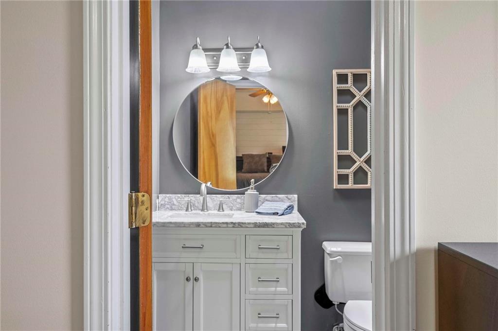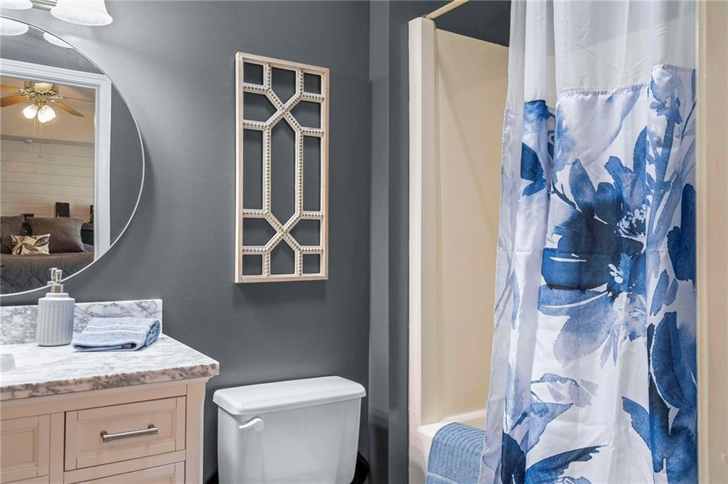 This home has great curb appeal. From the moment you drive up you'll wonder if the inside matches the outside in charm and character. Good news for you, it does! The large living room with vaulted ceiling has plenty of room for 2 couches or a sectional, perfect to snuggle in for movie night in front of the fireplace. You'll love the updated kitchen with white cabinets, granite counters and stylish backsplash! Stainless steel appliances complete the look. The vaulted ceiling in the kitchen and dining room keeps it feeling open and airy. You'll love the primary bedroom that's large enough for big furniture and ensuite bath with jetted tub. Your main-floor laundry keeps you from lugging those clothes baskets up & down the stairs. The finished basement is spacious and could be split if you need an additional bedroom or office space and has plenty of room for TV, workout or play. A half bath is tucked into the corner for convenience. The large yard is fenced and has room to roam. NEW ROOF in 2025!! Seller is providing an Old Republic Home Warranty. Don't delay, schedule your showing today.