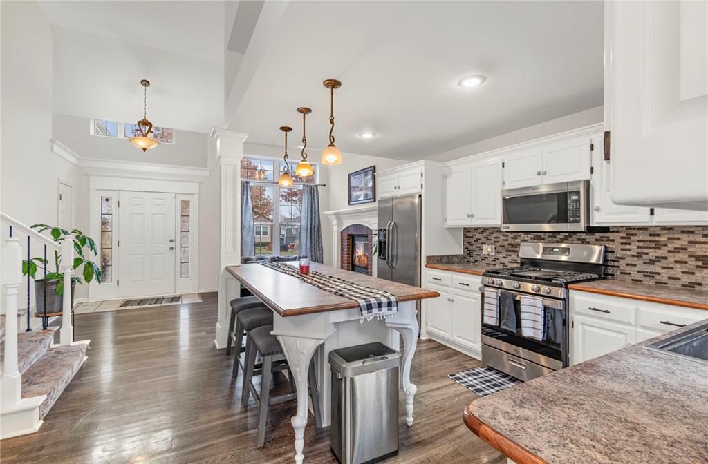 Step inside to an open main level that feels instantly warm and welcoming. A brick fireplace ready for cozy winter board games, vaulted ceilings, and wood floors built to handle everyday living. The kitchen brings everyone together with an island perfect for casual meals and homework sessions, a tile backsplash, and a brand new dishwasher, stove, and microwave set within a functional layout. A Water filtration system and a new tankless water heater add comfort and efficiency. Upstairs, all four bedrooms are on one level with laundry conveniently nearby, making daily routines effortless. The primary suite offers a huge custom walk-in closet, double vanity, tile flooring, and custom cabinetry. Downstairs, the recreation level is ideal for movie nights, hobbies, or game day gatherings, complete with a half bath and a large three-car garage for vehicles, storage, or a workshop. The sub-basement is already framed with electrical completed, ready for a gym, offices, or even two more bedrooms. Gas and electric lines are already in place for both the stove and dryer, allowing you to choose whichever appliance style you prefer. When warmer days return, the backyard becomes the center of life. The walkout living room and upper deck open to a spacious outdoor living area, perfect for grilling, lounging, and summer celebrations. Waiting for spring is easier knowing this home includes a 25x50 inground pool with automatic cover and diving board, ready for sunny days, laughter echoing off the privacy fence, and evenings of cannonballs, and quiet sunset swims. With green space behind the yard, the outdoor area feels private, open, and full of possibilities just in time for pool season. Abundant natural light, built-in entertainment shelving, excellent storage, and brick entry accents all add comfort and character. Tucked at the end of a quiet cul-de-sac, this home feels peacefully removed while still just minutes from shopping, dining, and highway access.