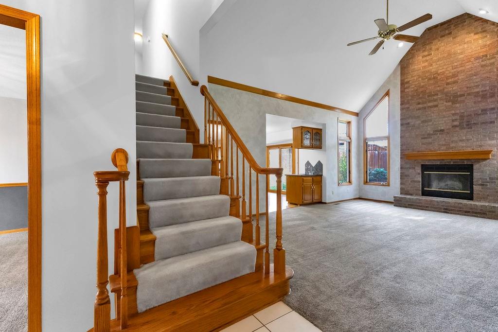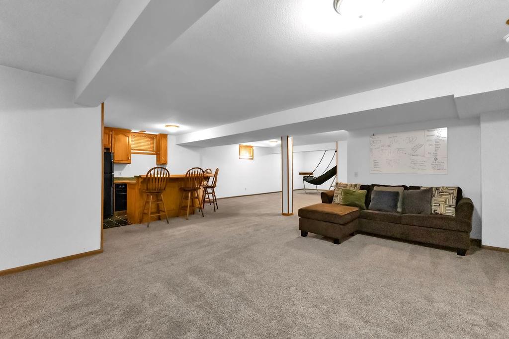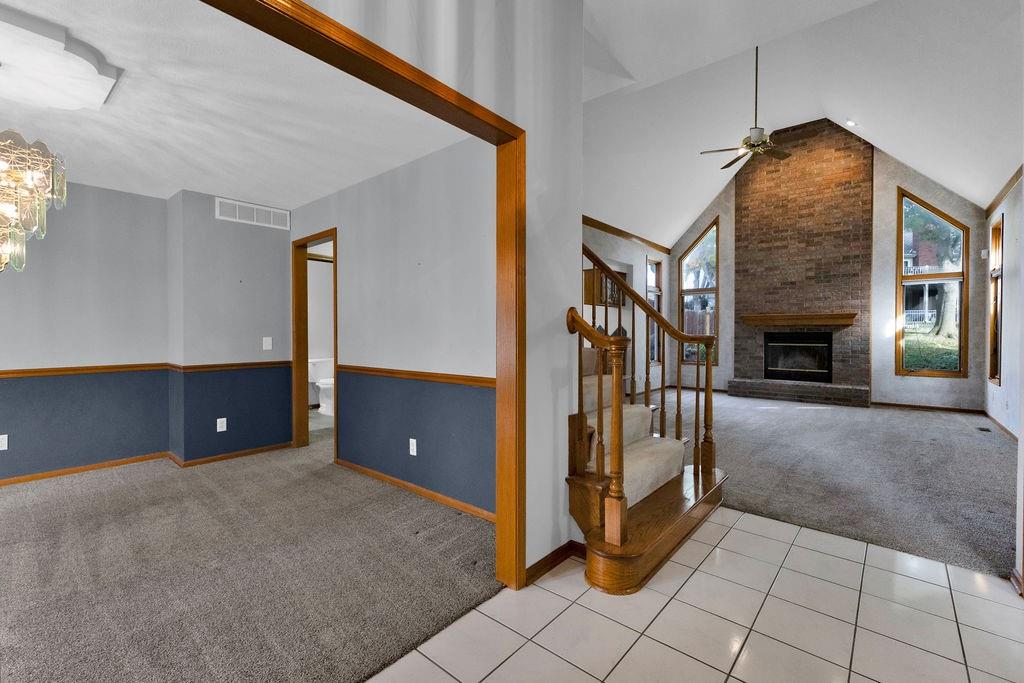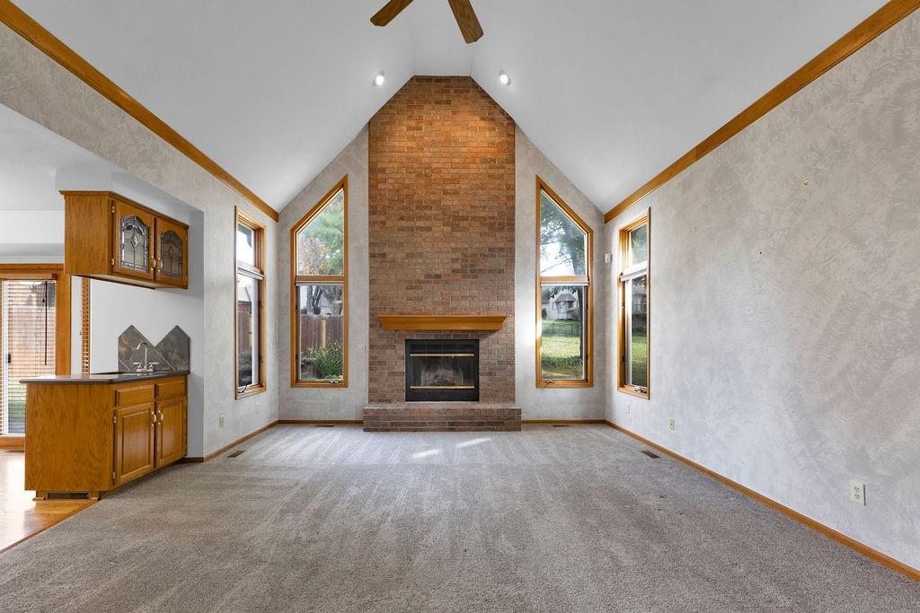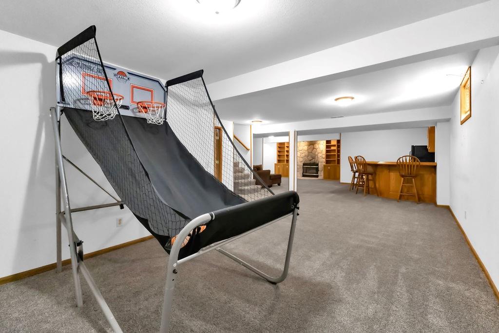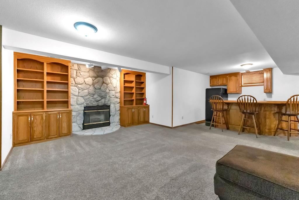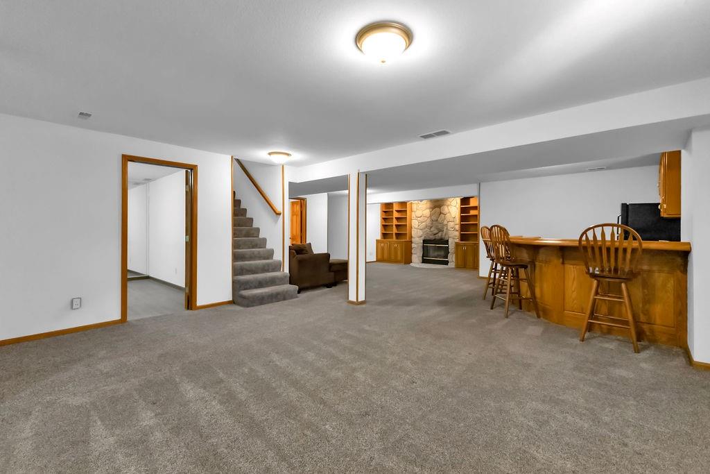 This beautifully maintained 1.5-story home offers an abundance of space and flexibility in a sought after neighborhood. The main floor boasts a warm living room with a brick fireplace, a formal dining room, and a spacious kitchen with a breakfast area. You’ll love the oversized primary suite with a tray ceiling, a spa-like bathroom, plus the convenience of main-floor laundry, a half bath, and a 2 car garage. Upstairs, find three comfortable bedrooms and a full bath, while the finished basement is made for fun - featuring a large rec room, full bath, wet bar, and a non-conforming bedroom or exercise room, along with plenty of storage. A brand new roof, security system, and all electric living finish off the amazing features of this home. With multiple living areas and thoughtful details throughout, this home is perfect for both entertaining and everyday living.