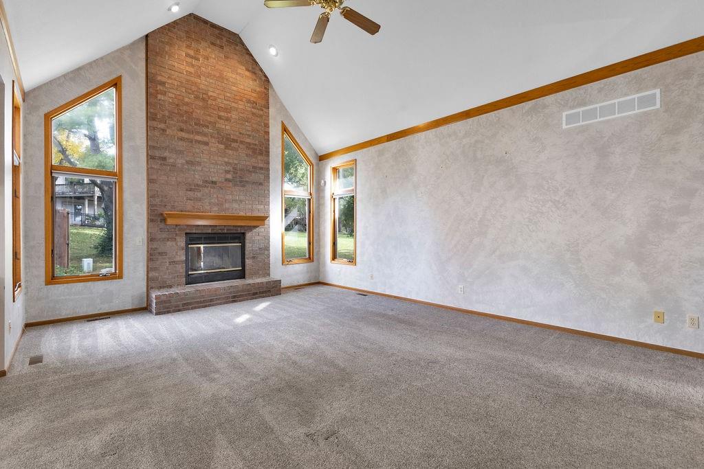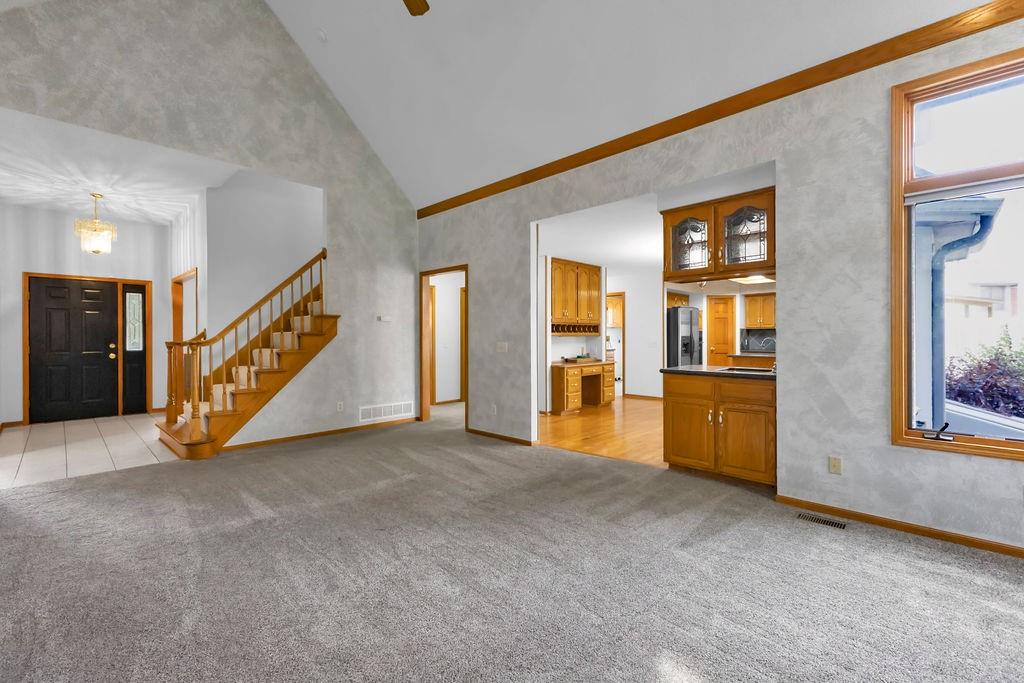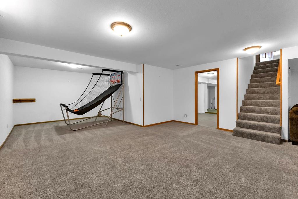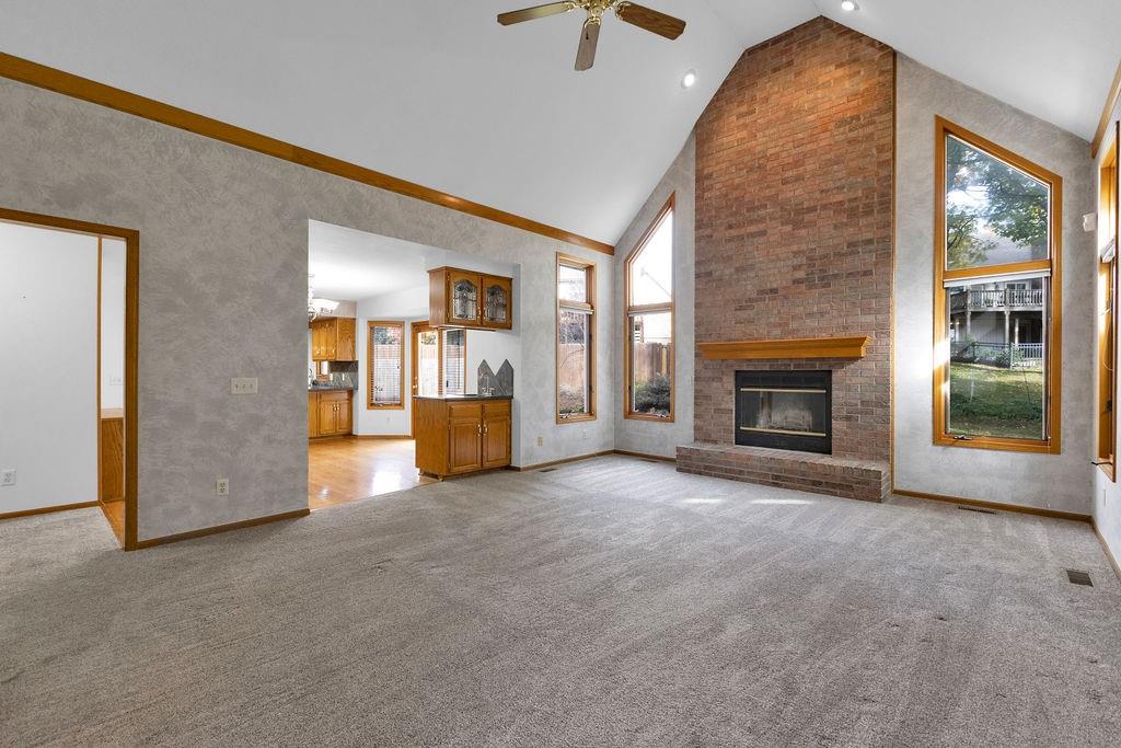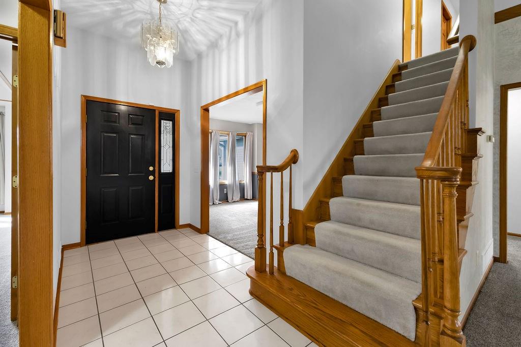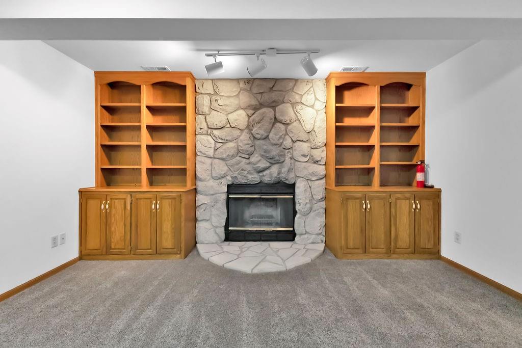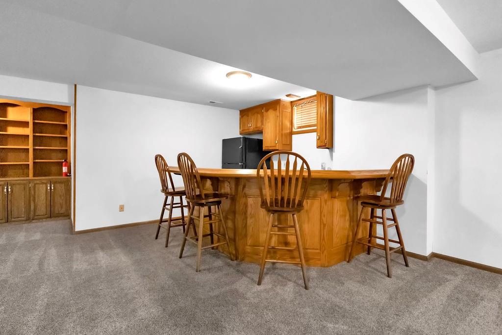 This beautifully maintained 1.5-story home offers an abundance of space and flexibility in a sought after neighborhood. The main floor boasts a warm living room with a brick fireplace, a formal dining room, and a spacious kitchen with a breakfast area. You’ll love the oversized primary suite with a tray ceiling, a spa-like bathroom, plus the convenience of main-floor laundry, a half bath, and a 2 car garage. Upstairs, find three comfortable bedrooms and a full bath, while the finished basement is made for fun - featuring a large rec room, full bath, wet bar, and a non-conforming bedroom or exercise room, along with plenty of storage. A brand new roof, security system, and all electric living finish off the amazing features of this home. With multiple living areas and thoughtful details throughout, this home is perfect for both entertaining and everyday living.