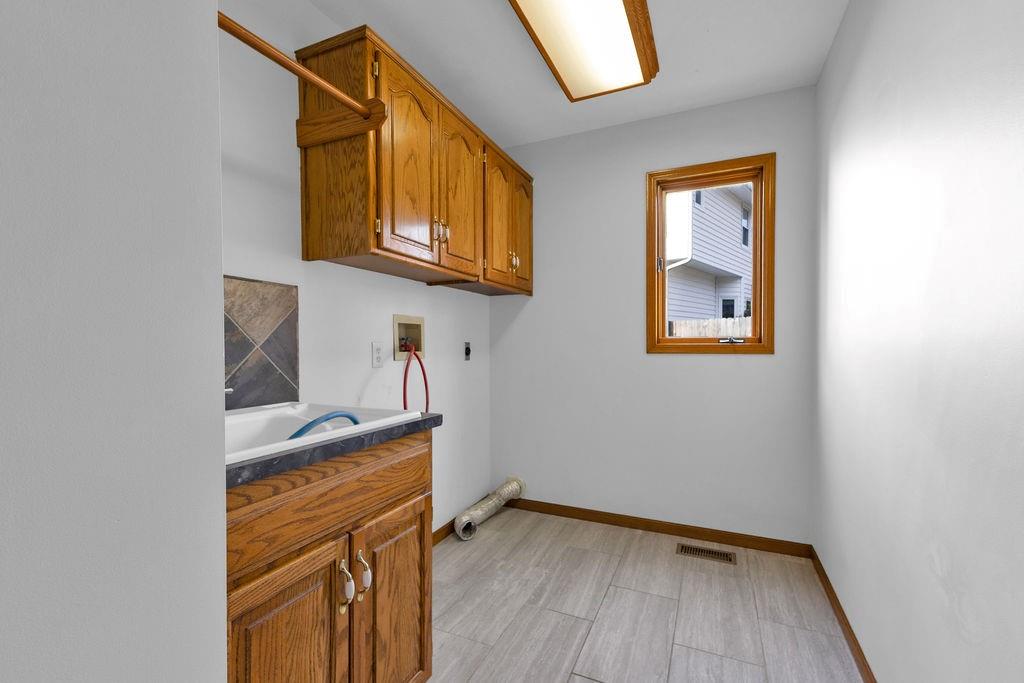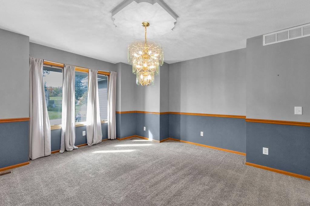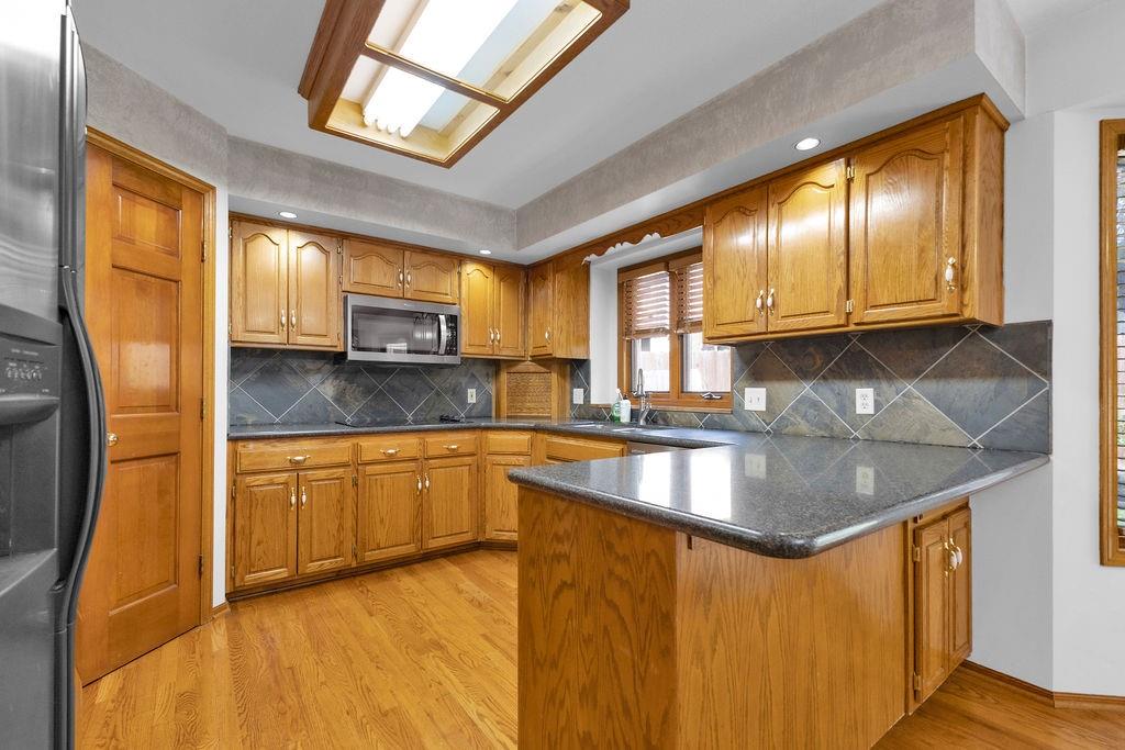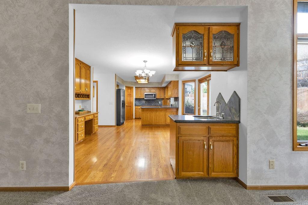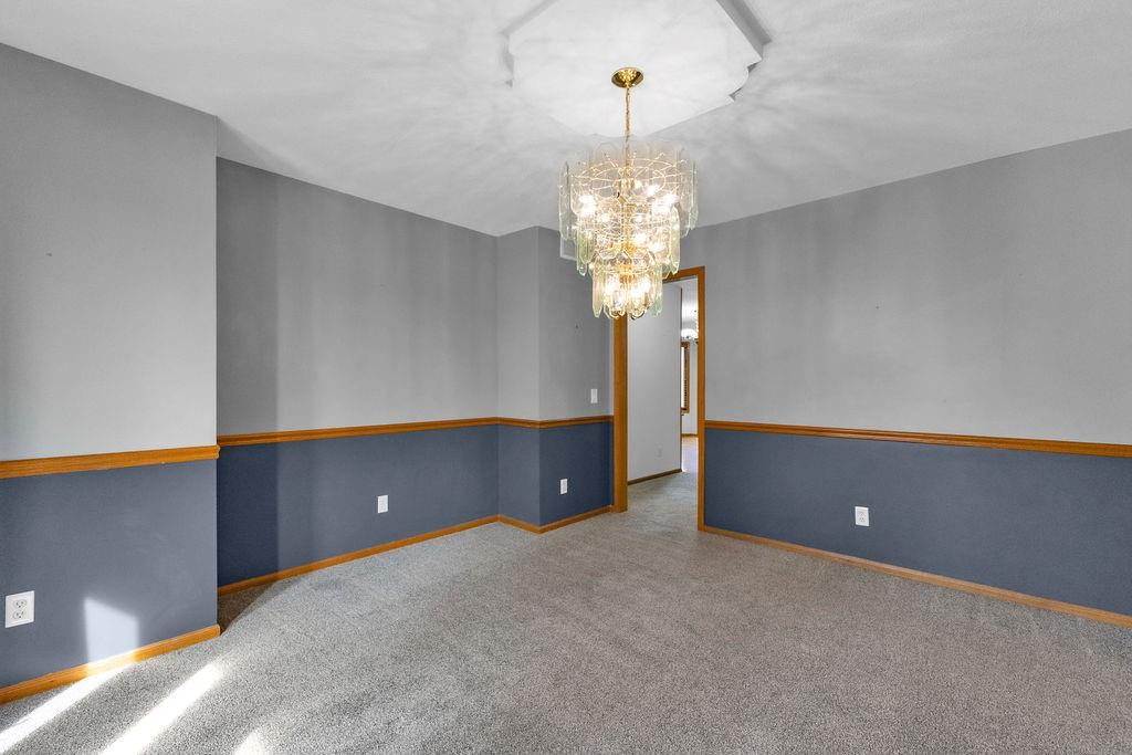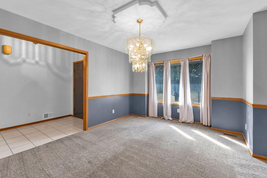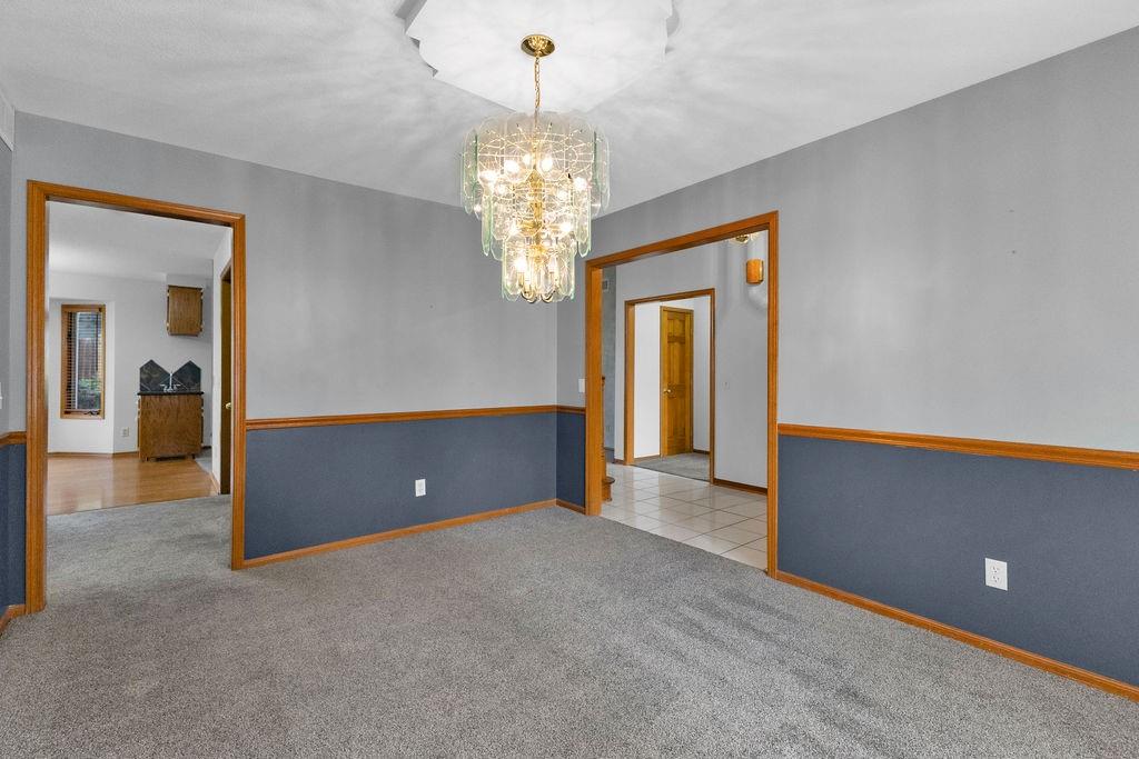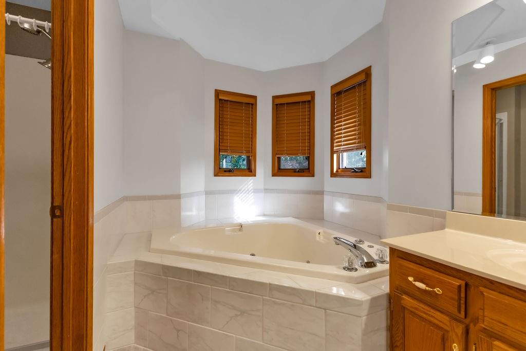 This beautifully maintained 1.5-story home offers an abundance of space and flexibility in a sought after neighborhood. The main floor boasts a warm living room with a brick fireplace, a formal dining room, and a spacious kitchen with a breakfast area. You’ll love the oversized primary suite with a tray ceiling, a spa-like bathroom, plus the convenience of main-floor laundry, a half bath, and a 2 car garage. Upstairs, find three comfortable bedrooms and a full bath, while the finished basement is made for fun - featuring a large rec room, full bath, wet bar, and a non-conforming bedroom or exercise room, along with plenty of storage. A brand new roof, security system, and all electric living finish off the amazing features of this home. With multiple living areas and thoughtful details throughout, this home is perfect for both entertaining and everyday living.