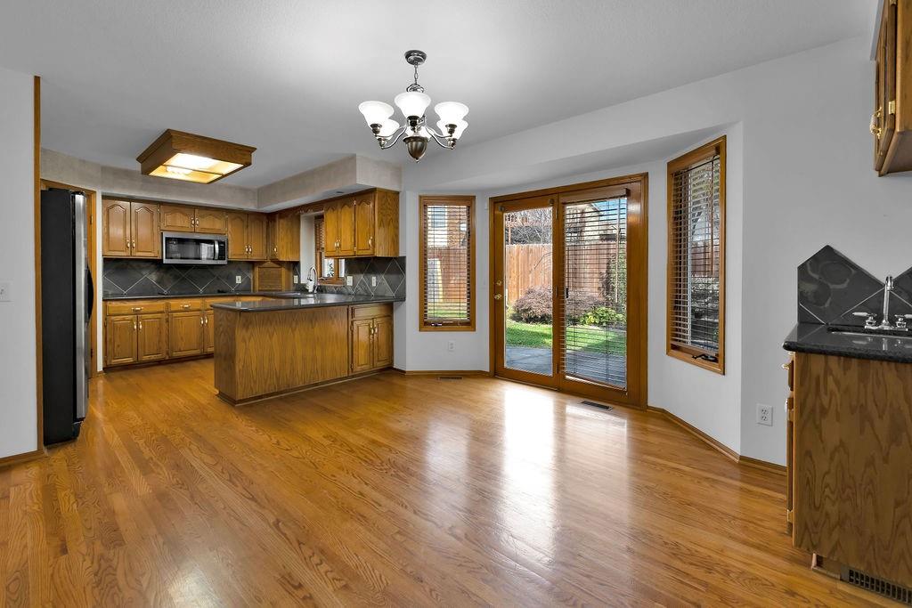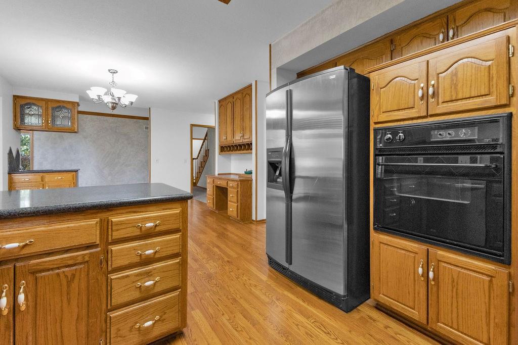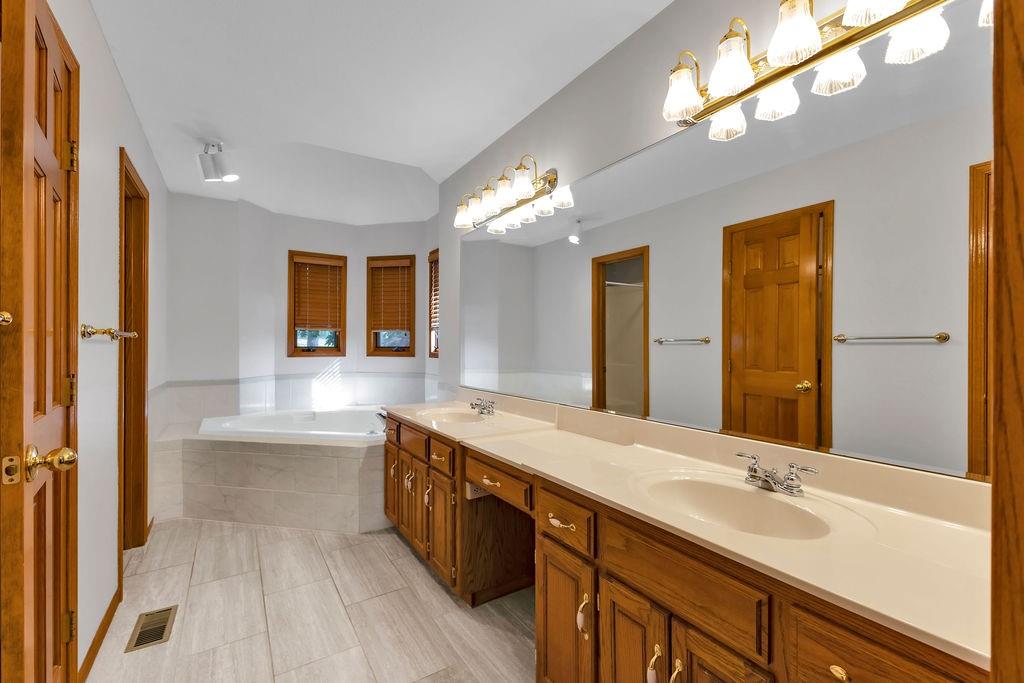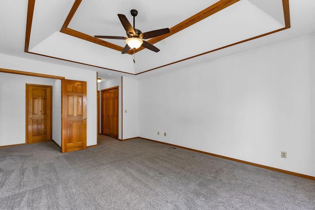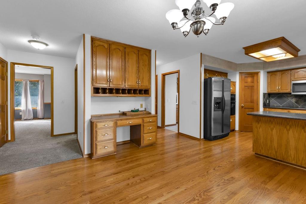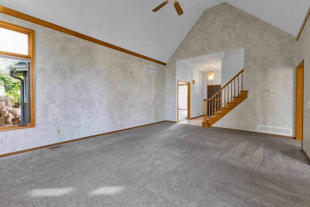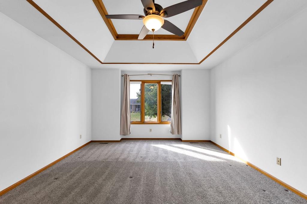 This beautifully maintained 1.5-story home offers an abundance of space and flexibility in a sought after neighborhood. The main floor boasts a warm living room with a brick fireplace, a formal dining room, and a spacious kitchen with a breakfast area. You’ll love the oversized primary suite with a tray ceiling, a spa-like bathroom, plus the convenience of main-floor laundry, a half bath, and a 2 car garage. Upstairs, find three comfortable bedrooms and a full bath, while the finished basement is made for fun - featuring a large rec room, full bath, wet bar, and a non-conforming bedroom or exercise room, along with plenty of storage. A brand new roof, security system, and all electric living finish off the amazing features of this home. With multiple living areas and thoughtful details throughout, this home is perfect for both entertaining and everyday living.
