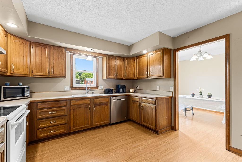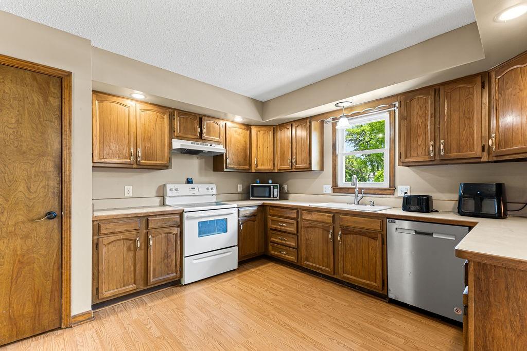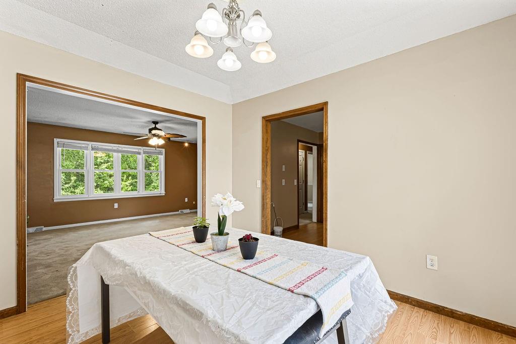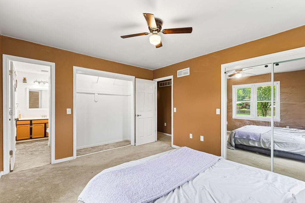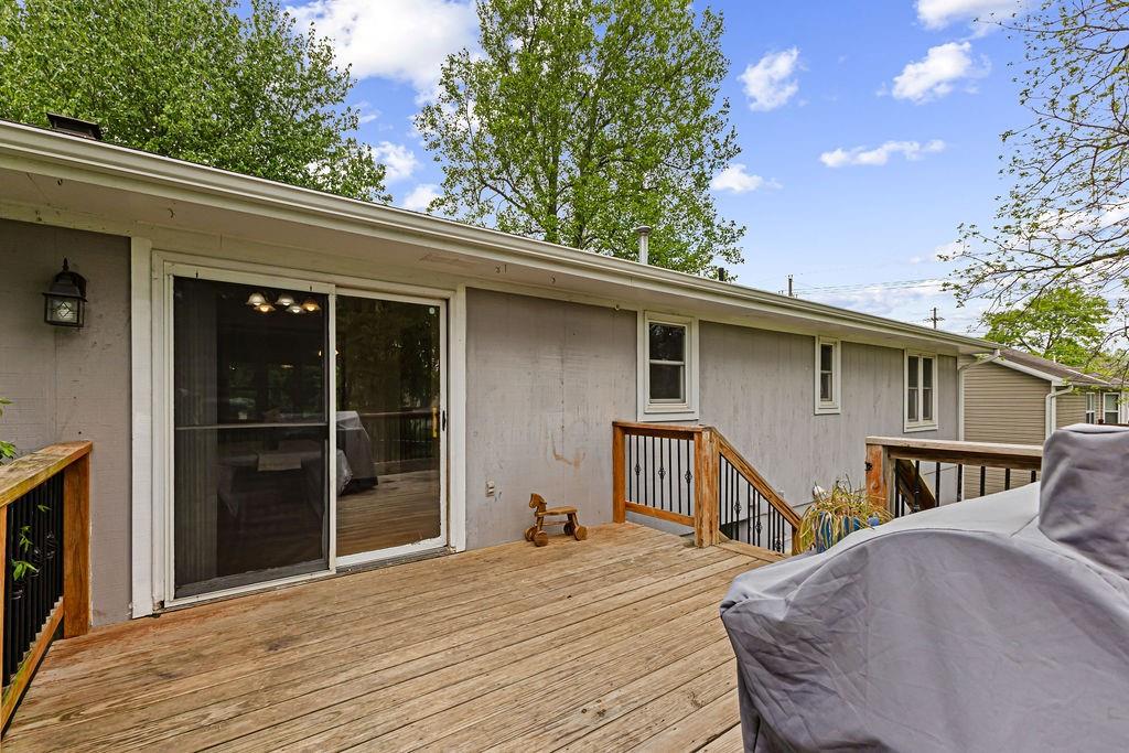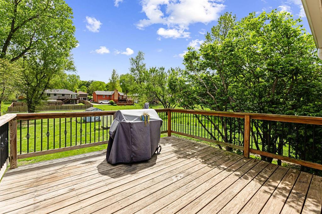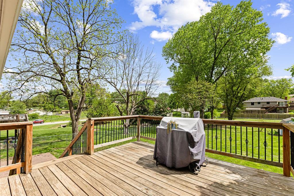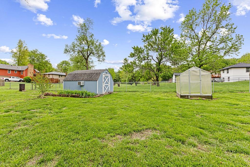 Space, character, and a backyard that has to be seen to be believed! This 3 bedroom, 2.5 bath split level home offers a lot to love. The main floor living room features a classic brick fireplace and flows into a dining area with access to the deck, where you'll enjoy peaceful tree-lined views of the expansive yard. The kitchen offers appliances, plenty of cabinet storage and connects easily to the main living spaces. The primary bedroom includes two closets and a private en-suite bathroom with walk-in shower. Two additional bedrooms share a full hall bath. Downstairs, the finished lower level adds valuable flex space anchored by a second brick fireplace - ideal for a rec room, home office, or entertaining area. A half bath and laundry/utility room round out the lower level. Outside is where this property truly shines: a large deck, stamped concrete patio, storage shed with window a/c unit, greenhouse, firepit and a sprawling fenced yard that extends well beyond the fence line to the east.