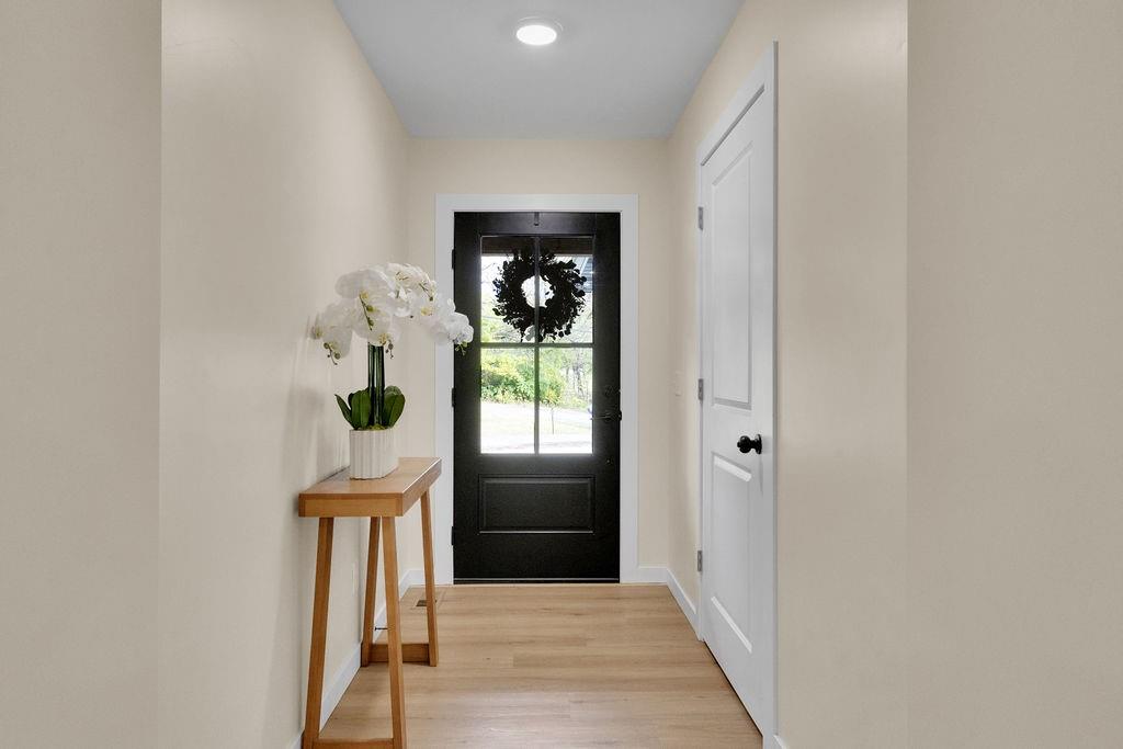 Brand New Modern Luxury Home in a Peaceful, Treed Setting Discover contemporary elegance in this stunning new construction home, nestled in a quiet, tree-lined location. Thoughtfully designed with modern luxury finishes throughout, this residence offers 4 spacious bedrooms and 3 beautifully appointed bathrooms. The heart of the home features an open-concept living area with a gourmet kitchen showcasing quartz countertops, a waterfall island, and premium cabinetry. Plus, a large pantry with shelving and more cabinetry. Enjoy seamless indoor-outdoor living with a large deck off the living room, perfect for relaxing or entertaining while taking in the serene views. High-end details include wide-plank luxury vinyl flooring and cozy carpet on the main level, and a stunning metallic epoxy floor in the finished basement. Wet bar with plenty of cabinet space, quartz counter and a wine fridge add to the already amazing basement recreation room. The media wall upstairs and dedicated theatre room downstairs create ideal spaces for entertainment and family gatherings. The exterior impresses with LP Smart Siding, stone accents, and soffit lighting that highlights the home’s modern curb appeal. Every inch of this home has been crafted for style, comfort, and functionality. There is also a 1 year home warranty offering even more peace of mind to this Brand-New Home! Conveniently located only 7 minutes from the North Shoppes.
