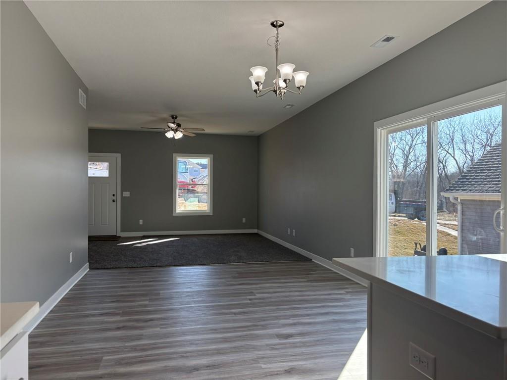 Conveniently located near I-29 just off Hwy 169 and FF Highway! This newly built, vinyl-sided home offers low-maintenance living combined with thoughtful design and quality finishes throughout. A covered front patio welcomes you into the well-designed 1.5-story floor plan featuring four bedrooms and two full baths. The spacious, open living room and dining area flow seamlessly into the kitchen, creating an ideal space for everyday living and entertaining. The kitchen showcases quality-built cabinetry with dovetail construction and soft-close doors and drawers, hard-surface countertops, stainless steel appliances, and a counter with seating for casual dining. The primary suite is conveniently located on the main level and includes a walk-in closet and private ensuite bath with a dual-bowl vanity, 5-foot Onyx shower, and linen closet. Upstairs, you’ll find the fourth bedroom along with a comfortable family room—perfect for a second TV area, guest retreat, home office, or play space. Additional highlights include main-floor laundry, a 2-car attached garage, and a covered back patio for relaxing outdoors. Enjoy true ease of living with HOA services that include snow removal, mowing, and trash service—all for a low monthly fee.