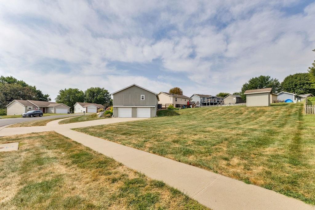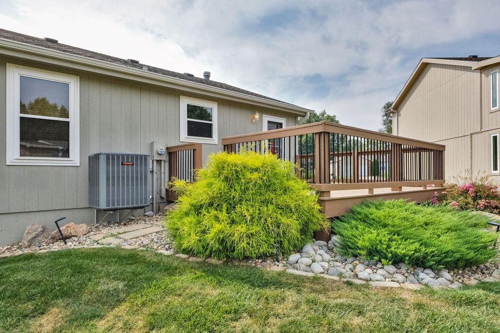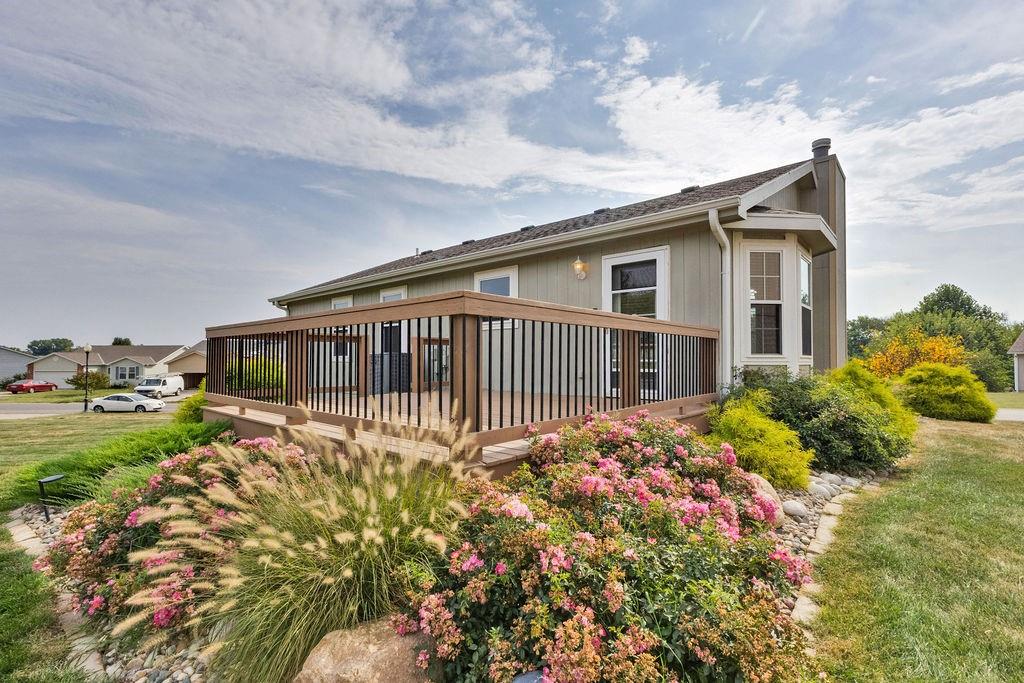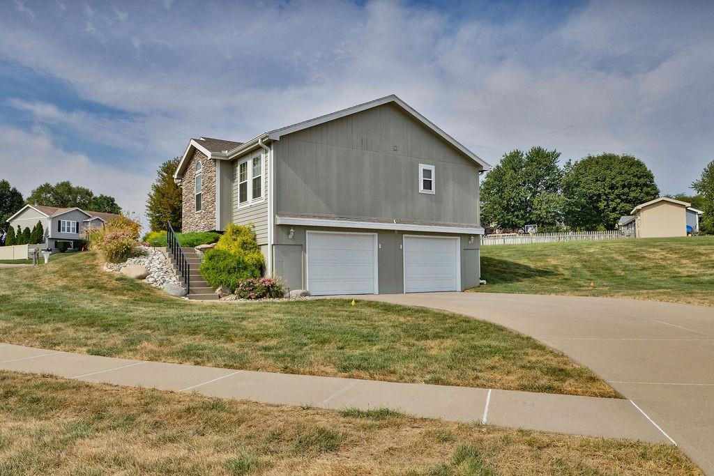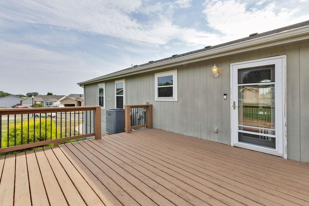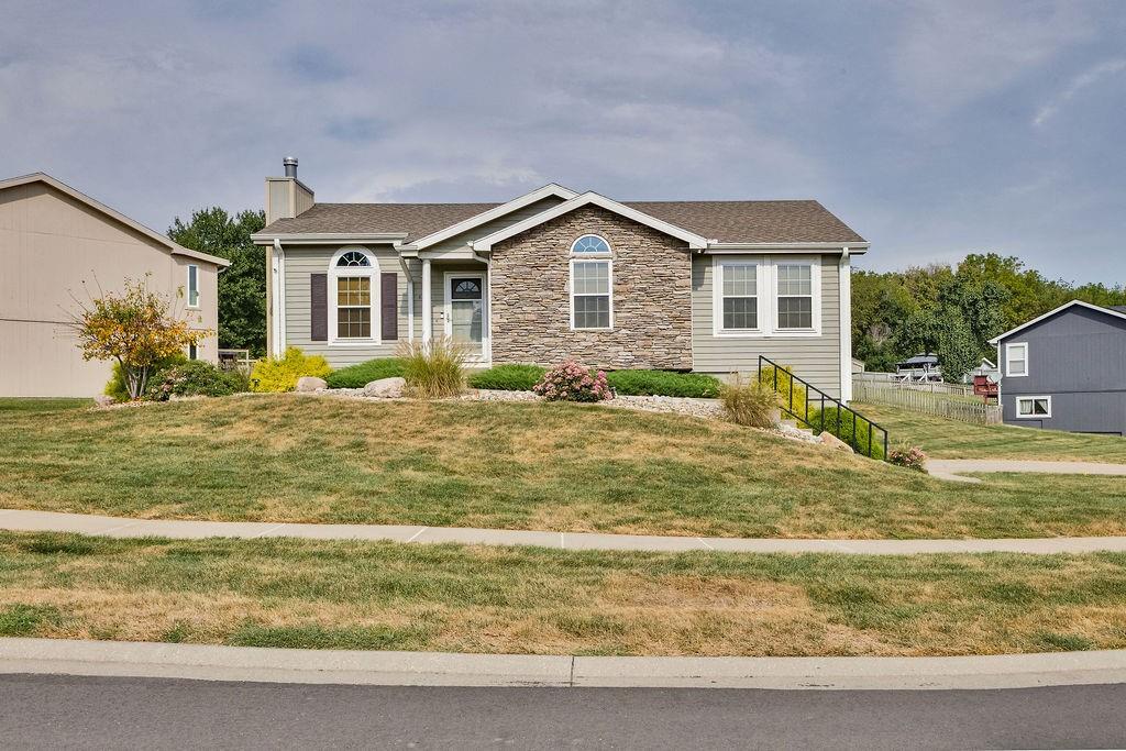 This well-maintained home sits on a spacious corner lot with professional landscaping, accent lighting, rock detail, and an irrigation system for easy upkeep. Inside, the large, bright eat-in kitchen offers plenty of cabinet space, and a center island. The living room boasts soaring ceilings with a decorative accent shelf, a cozy wood-burning fireplace with custom lighting, and elegant wood blinds throughout. The main floor provides three bedrooms and two full baths, including a generous master suite with a private bath featuring a double sink vanity and his-and-hers closets. A convenient main floor laundry adds to the home’s functionality. The lower level is already studded for a bathroom and ready to finish into a spacious rec room or additional living space. The oversized two car garage provides extra storage. Outdoors, a large deck off the kitchen makes the perfect spot for entertaining. This total electric home blends comfort, style, and convenience. Ready for its next owner!