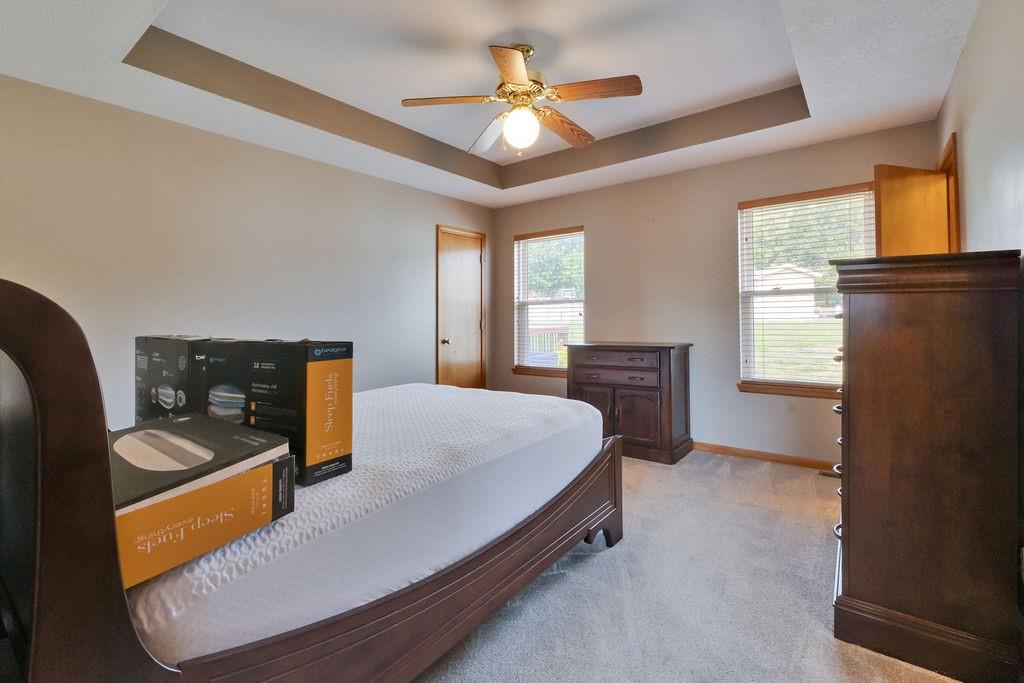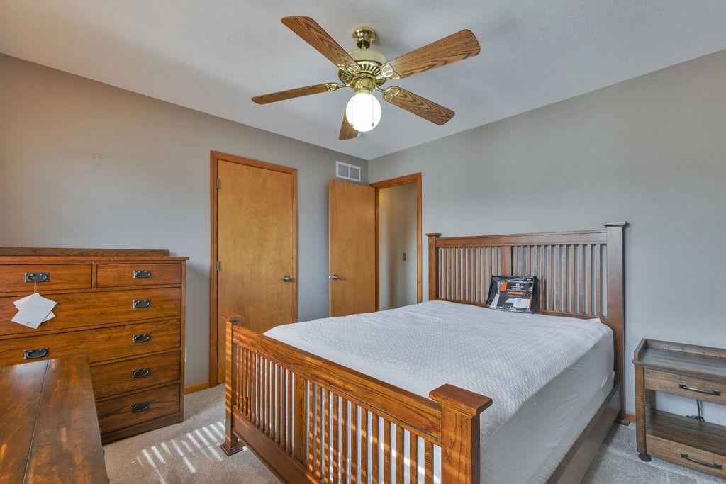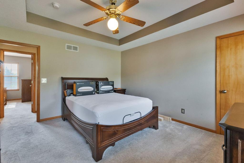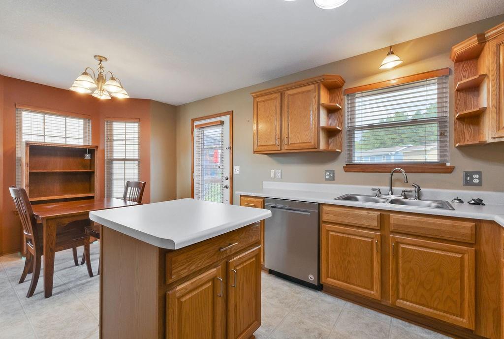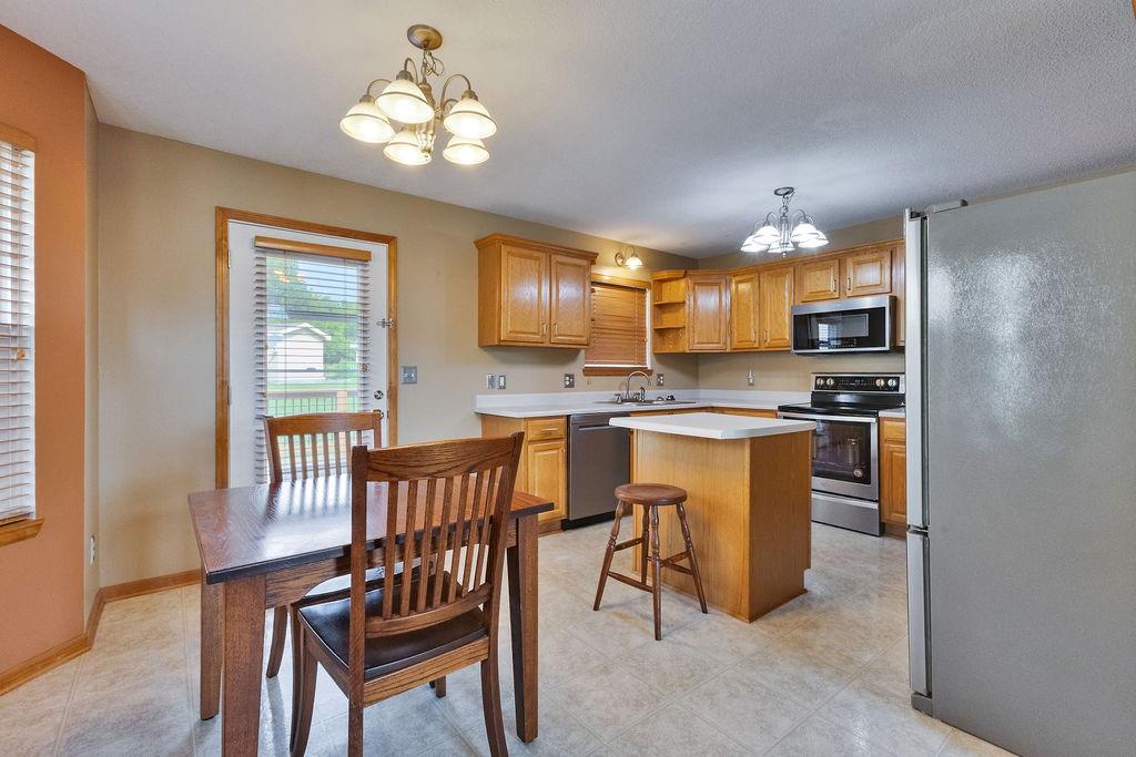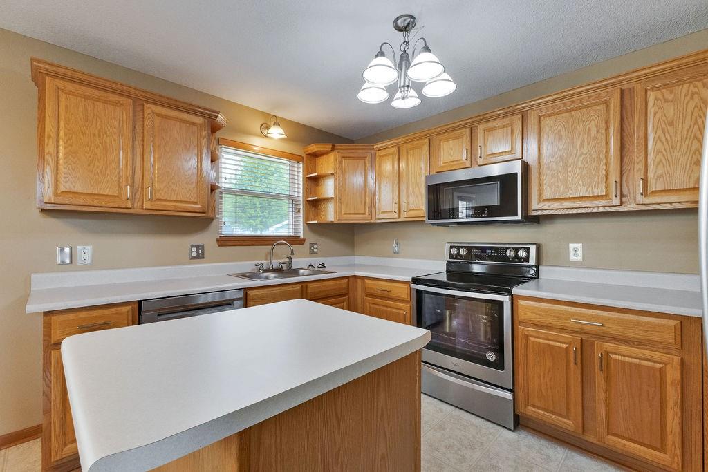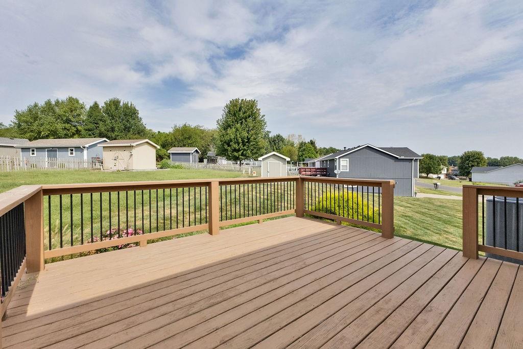 This well-maintained home sits on a spacious corner lot with professional landscaping, accent lighting, rock detail, and an irrigation system for easy upkeep. Inside, the large, bright eat-in kitchen offers plenty of cabinet space, and a center island. The living room boasts soaring ceilings with a decorative accent shelf, a cozy wood-burning fireplace with custom lighting, and elegant wood blinds throughout. The main floor provides three bedrooms and two full baths, including a generous master suite with a private bath featuring a double sink vanity and his-and-hers closets. A convenient main floor laundry adds to the home’s functionality. The lower level is already studded for a bathroom and ready to finish into a spacious rec room or additional living space. The oversized two car garage provides extra storage. Outdoors, a large deck off the kitchen makes the perfect spot for entertaining. This total electric home blends comfort, style, and convenience. Ready for its next owner!