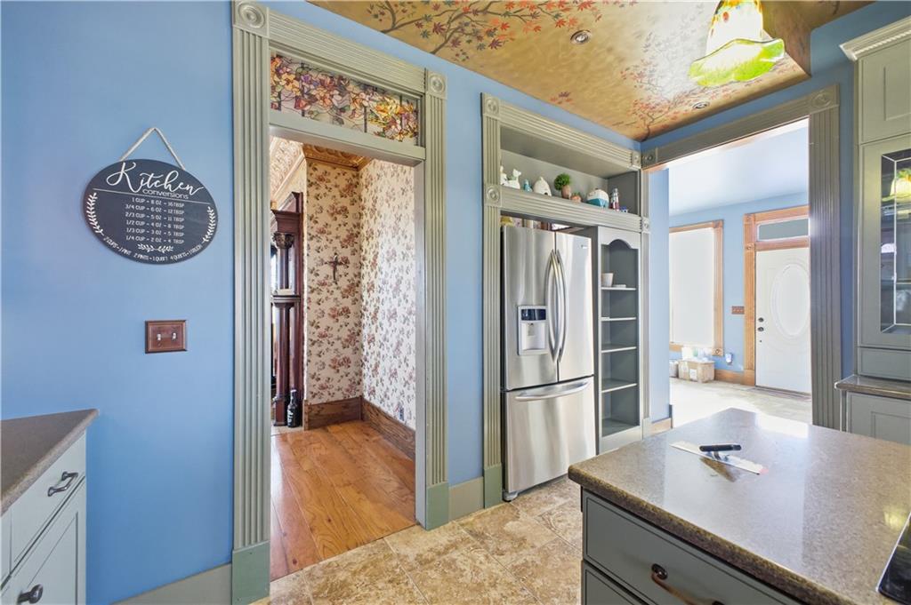 As you approach the property, the first glimpse of this beautiful home instantly draws you in with its timeless charm and inviting wraparound porch. Completely redone down to the studs, this home blends historic character with modern updates. It offers beautiful painted ceilings, ornate lighting, and crown molding. Step inside and you’re welcomed by a stunning sunroom filled with natural light—it truly takes your breath away and sets the tone for the rest of the home. The beautiful staircase immediately catches your eye, while the spacious living and dining rooms feel warm and cozy thanks to the fireplace and rich hardwood floors that perfectly complement the space. The kitchen is truly a cook’s dream, featuring quartz countertops, custom-built maple cabinets, and beautiful tile flooring. Just behind elegant French doors is the main-floor bedroom, showcasing even more of the thoughtful details throughout the home. A full bathroom is conveniently located just off the sunroom. Upstairs, you’ll find a cozy sitting area with its own fireplace—perfect for relaxing. This level also includes three bedrooms with one currently serving as a walk-in closet. A full bathroom completes this level, featuring double vanities, a jetted tub, and a separate shower. Each room is just as lovely as the next. Outside, the property continues to impress with a large 55’ x 40’ shop featuring concrete floors, water, sewer, 220 electric, two built-in rooms, one 14-foot door, and two 8-foot doors. The yard is enclosed with a privacy fence. The roof was replaced approximately five years ago. Situated on 1 acre (mol) in a convenient location close to Saint Joseph, Maryville, and Savannah. This home truly has it all—beauty, character, and history. You won’t want to miss this one. Schedule your showing before it’s gone!